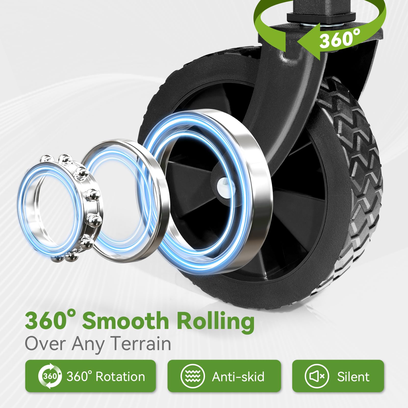 - Räder: Geländegängige Reifen, Vorderräder 360° frei drehbar