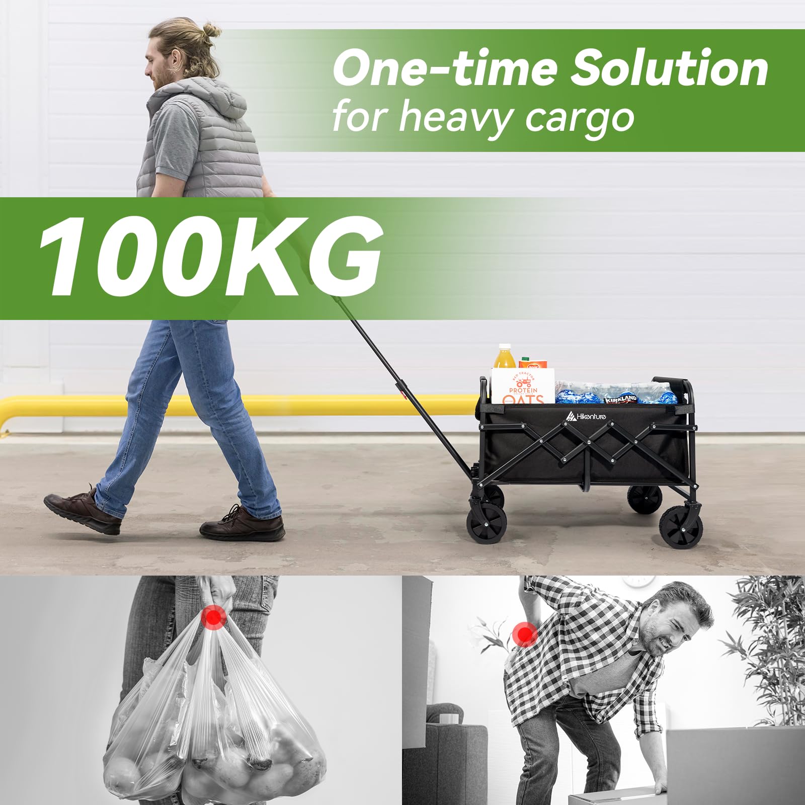 HIKENTURE Bollerwagen Faltbar – 65L, 100kg, 4.9kg Leichtgewicht