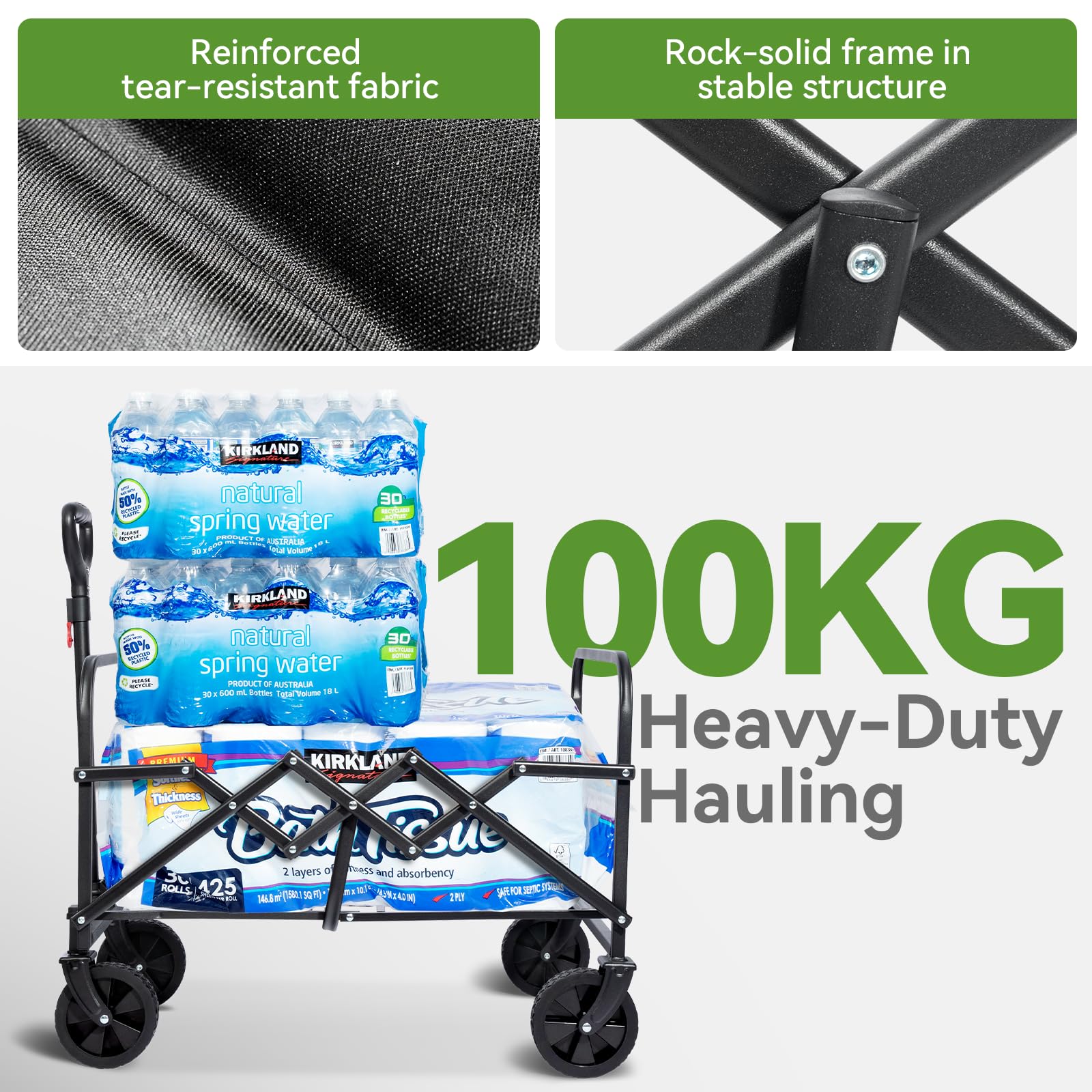 Der robuste Rahmen aus hochfestem Stahl ist für eine Belastung von bis zu 100 kg ausgelegt und widersteht Rost sowie Ausbleichen. Das strapazierfähige 600D Oxford-Gewebe ist reissfest und besonders pflegeleicht, was den Handwagen zum perfekten Begleiter für den anspruchsvollen Einsatz im Freien macht.