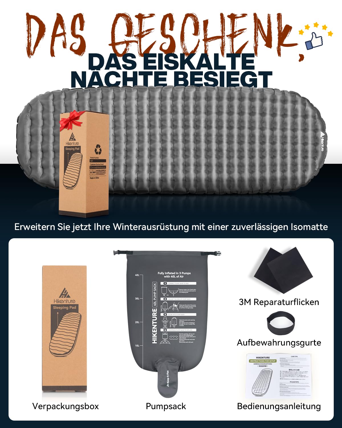 Diese ultraleichte Isomatte ist Ihr verlässlicher Begleiter für erholsamen Schlaf bei all Ihren Outdoor-Abenteuern, egal zu welcher Jahreszeit.