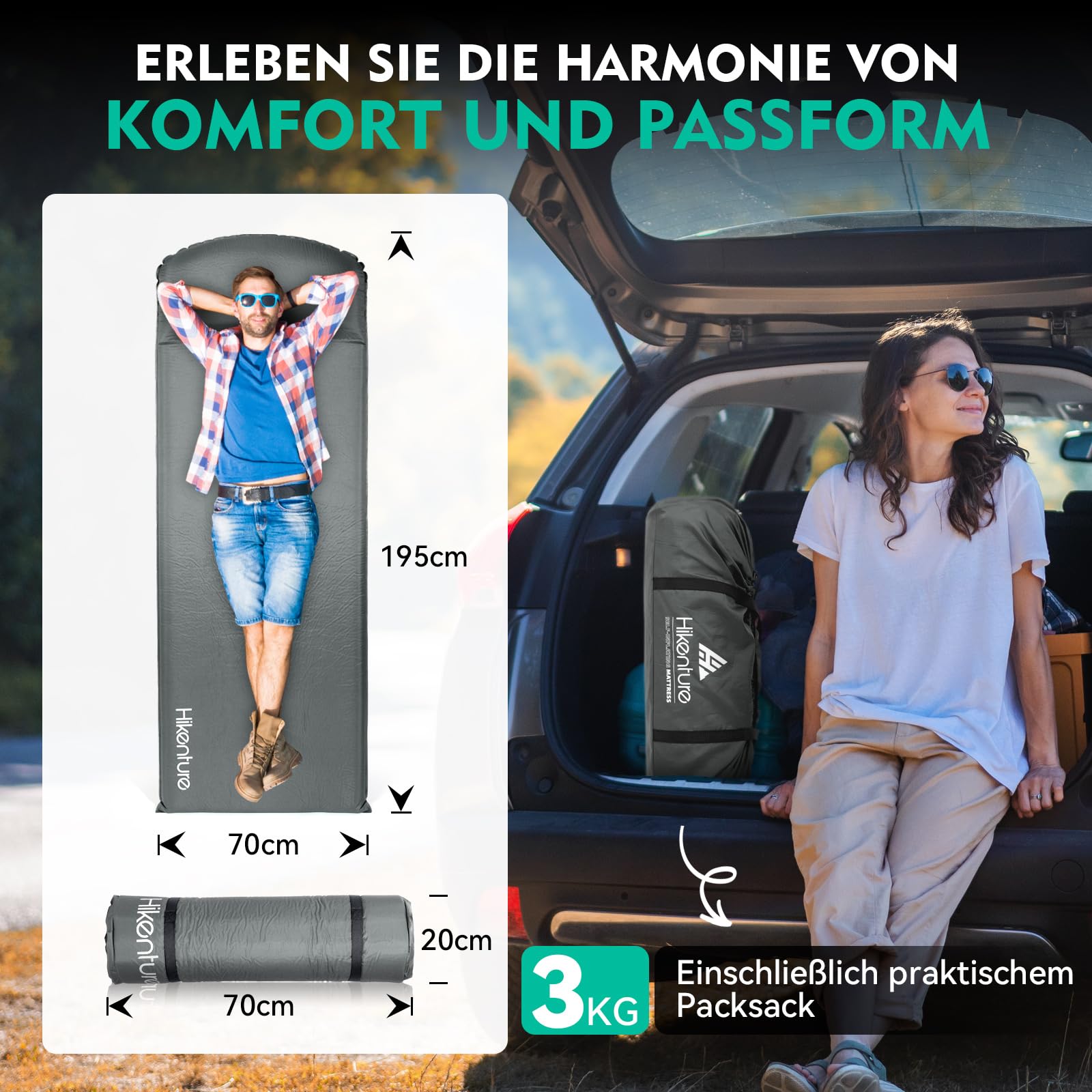 HIKENTURE Isomatte Selbstaufblasend Camping Matratze 8CM A1