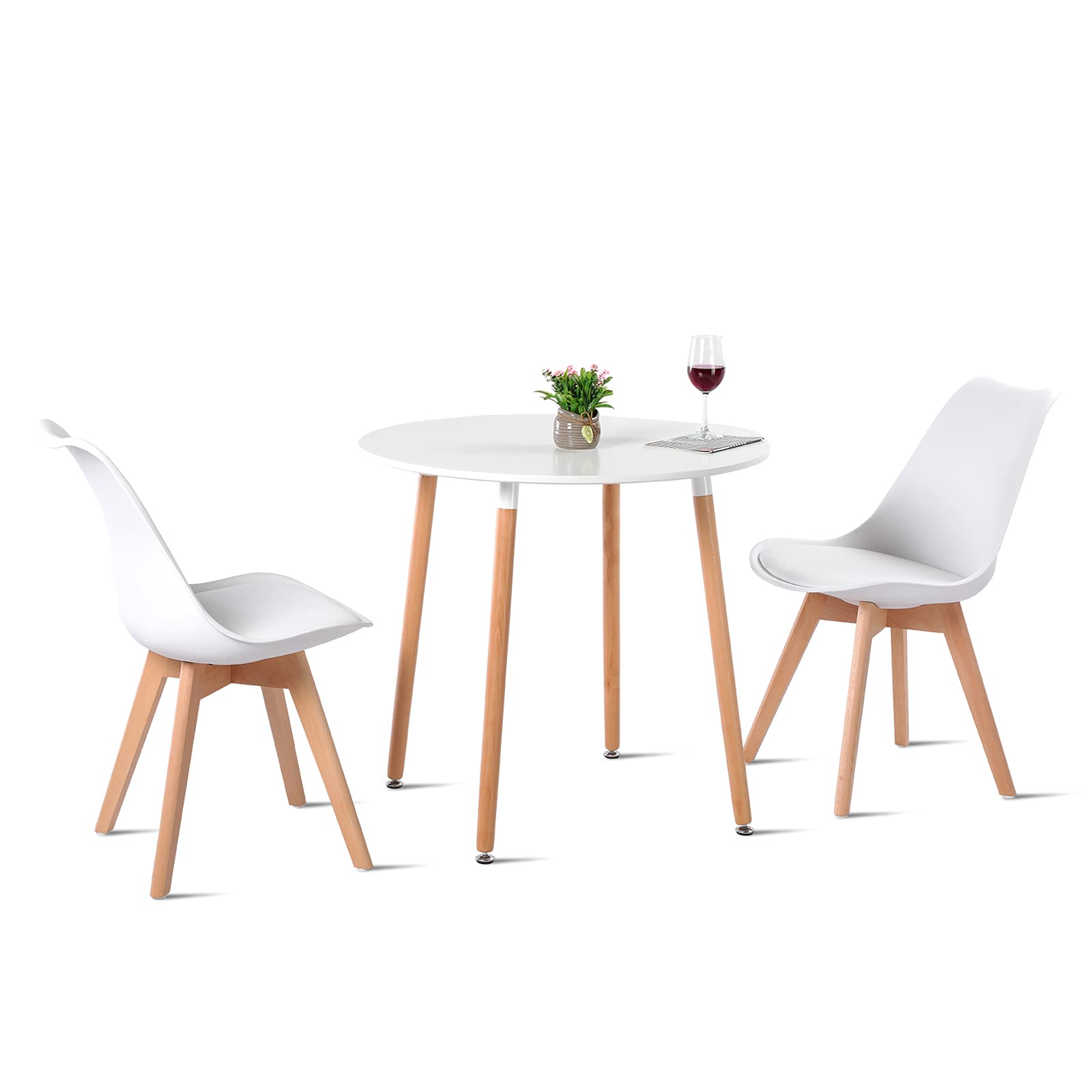 H.J WeDoo Esstisch Set Essgruppe – Holztisch 2 Stühle Weiss 80cm