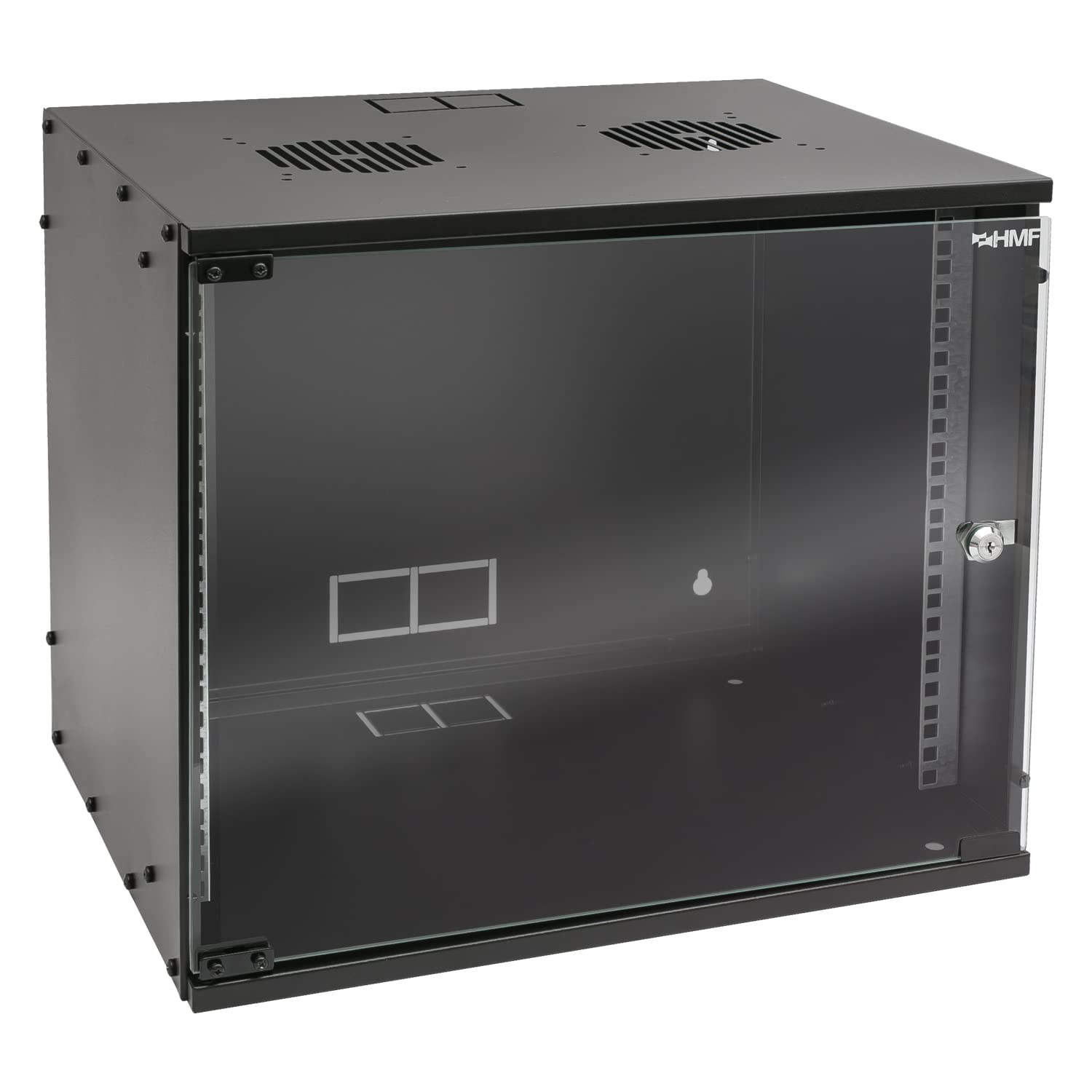 HMF 65709-02 Netzwerkschrank 19 Zoll - 9 HE 400mm Glastür Schwarz
