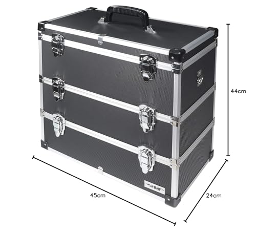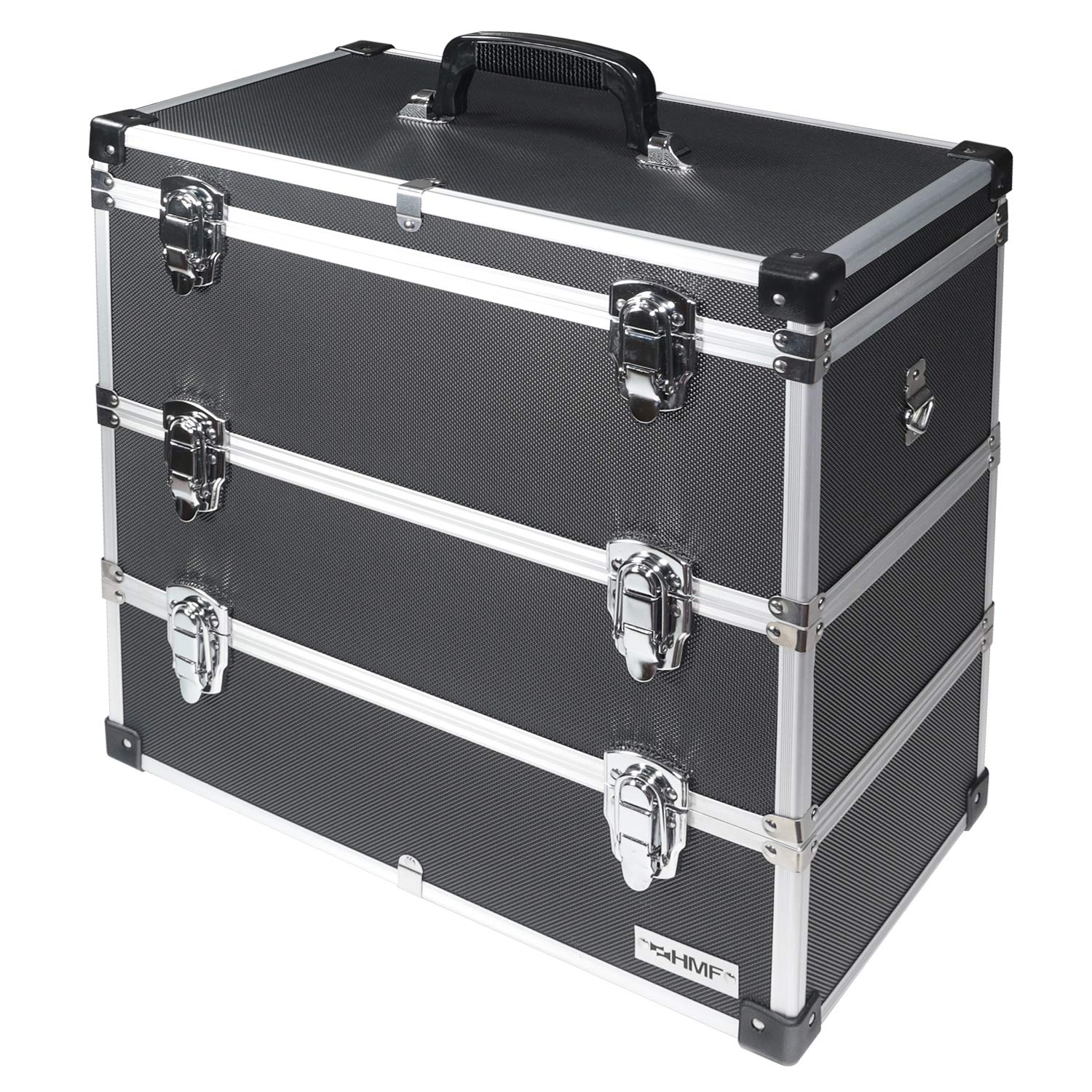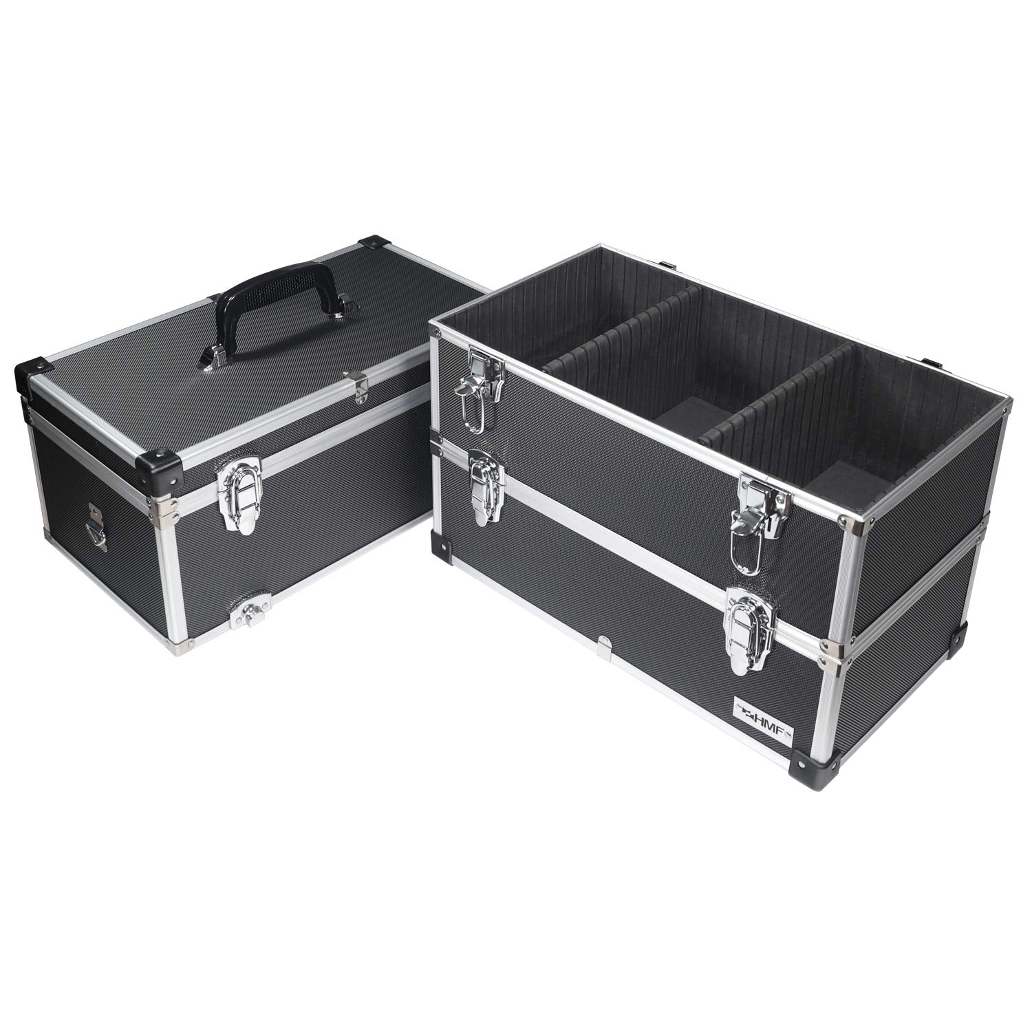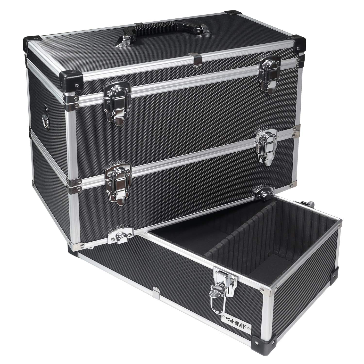 HMF 14661-02 Alu Werkzeugkoffer leer – Schwarz, 3 Etagen