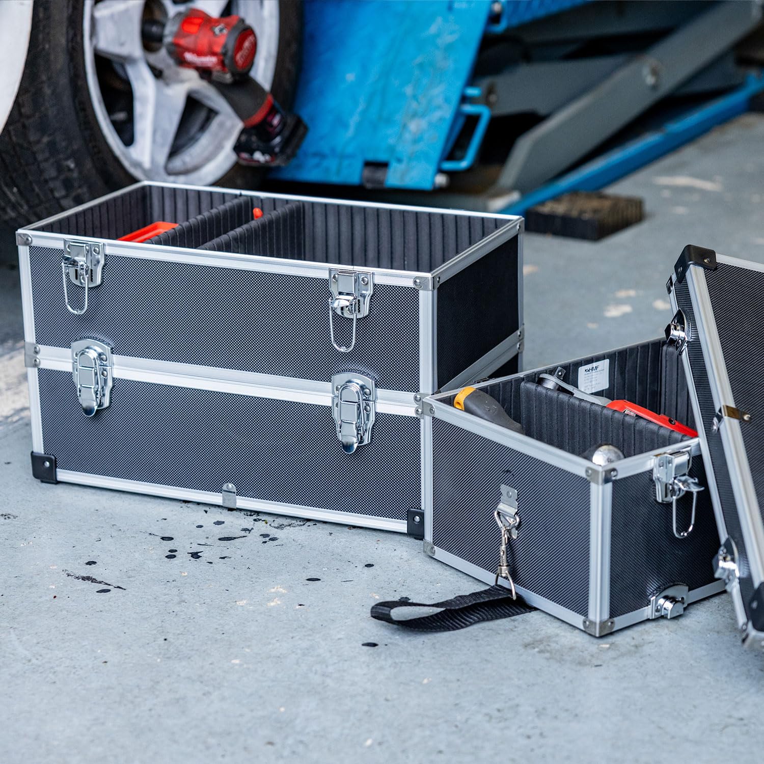 Im Inneren sorgen die flexiblen Trennwände für perfekte Ordnung. Gestalten Sie die Facheinteilung auf jeder Ebene individuell, um Werkzeuge, Kleinteile oder empfindliche Geräte passgenau und sicher zu verstauen. Die solide Verarbeitung garantiert Langlebigkeit, auch bei anspruchsvollem Einsatz unterwegs.