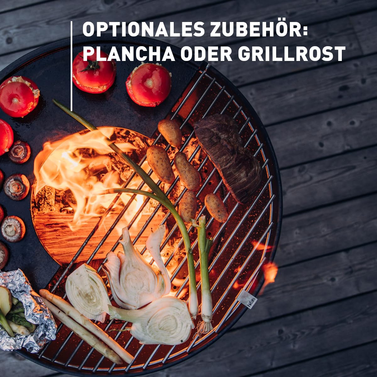 - Grillieren & Plancha: Mit dem passenden Grillrost oder den Grillplatten wird die BOWL 57 zur Outdoor-Küche.