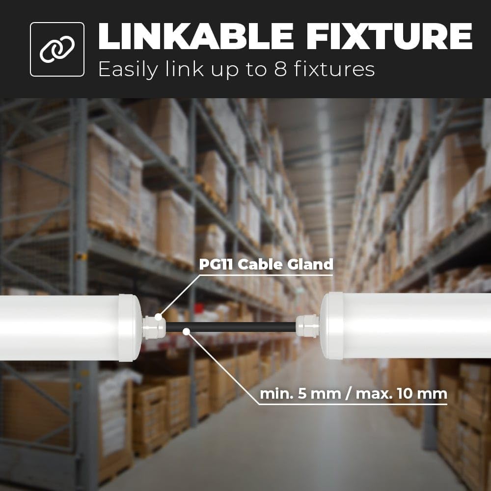 Einfache und flexible Installation: Die Montage ist dank des "Plug and Play"-Prinzips und des mitgelieferten Montagesets unkompliziert. Da die Lichtquelle bereits fest verbaut ist, entfällt der Kauf separater LED-Röhren. Über die praktischen Anschlussverschraubungen können Sie zudem bis zu 8 Leuchten in Reihe miteinander verbinden.