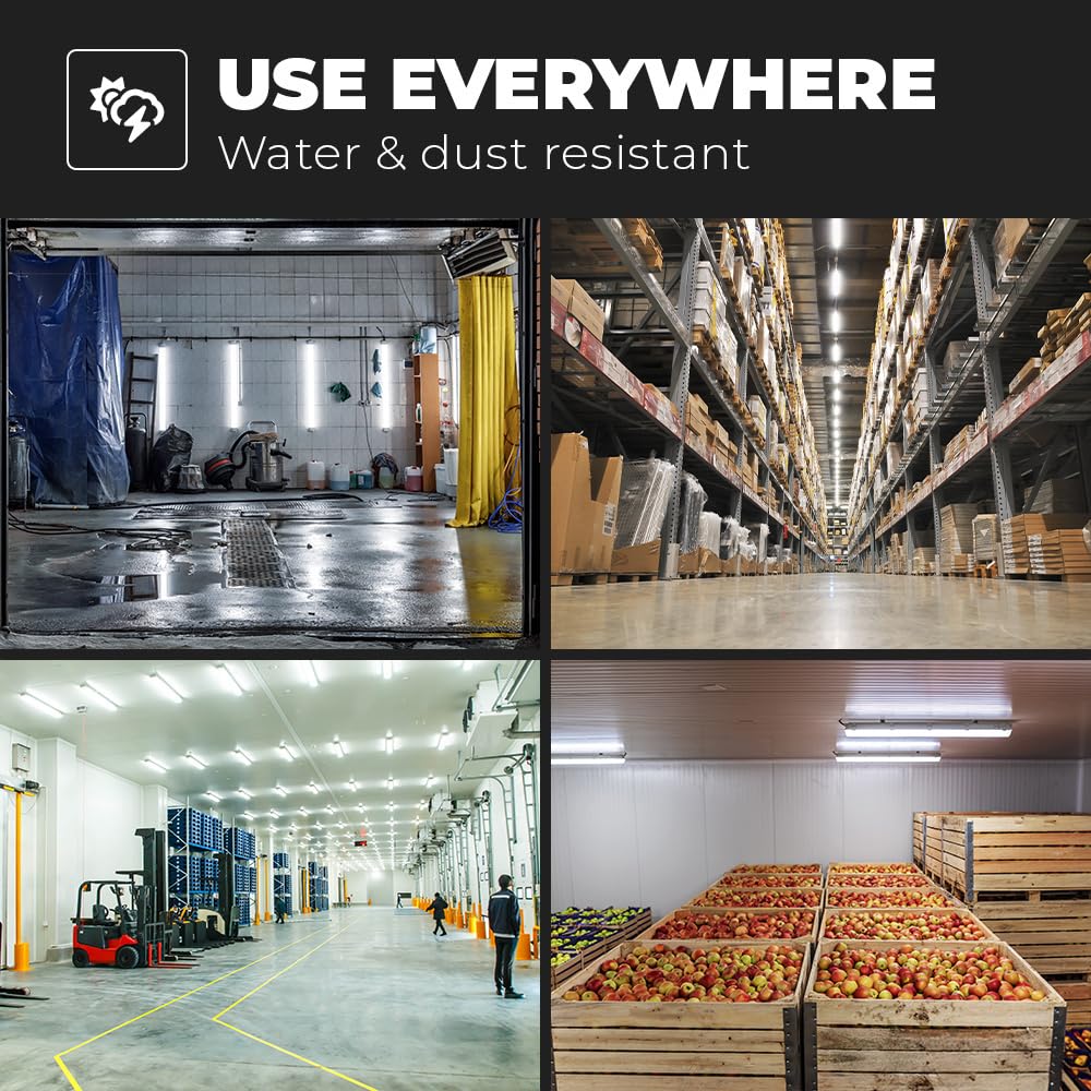 Vielseitige Anwendungsbereiche: Ob in Kellern, Kühlräumen, Garagen, Werkstätten oder Lagerhallen – diese Leuchte ist für fast jeden Bereich geeignet. Dank ihres blendfreien, diffusen Lichts und der hohen Stossfestigkeit ist sie auch eine ausgezeichnete Wahl für öffentliche Bereiche wie Parkhäuser oder Durchgänge im Innen- und Aussenbereich.