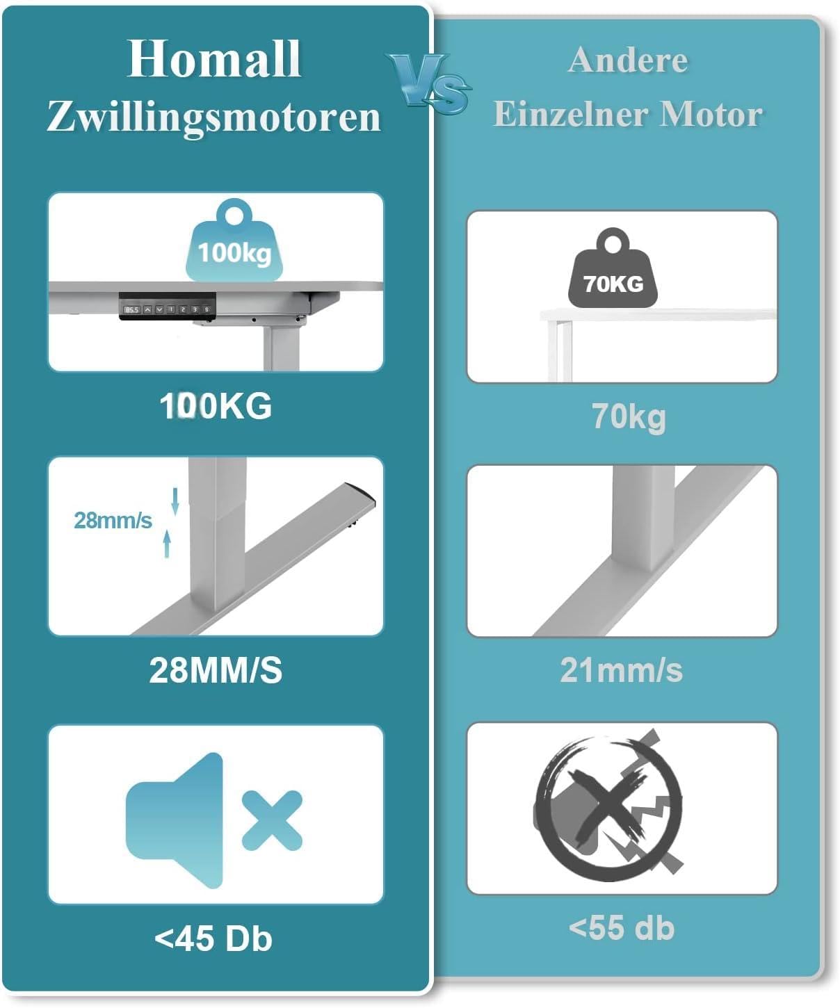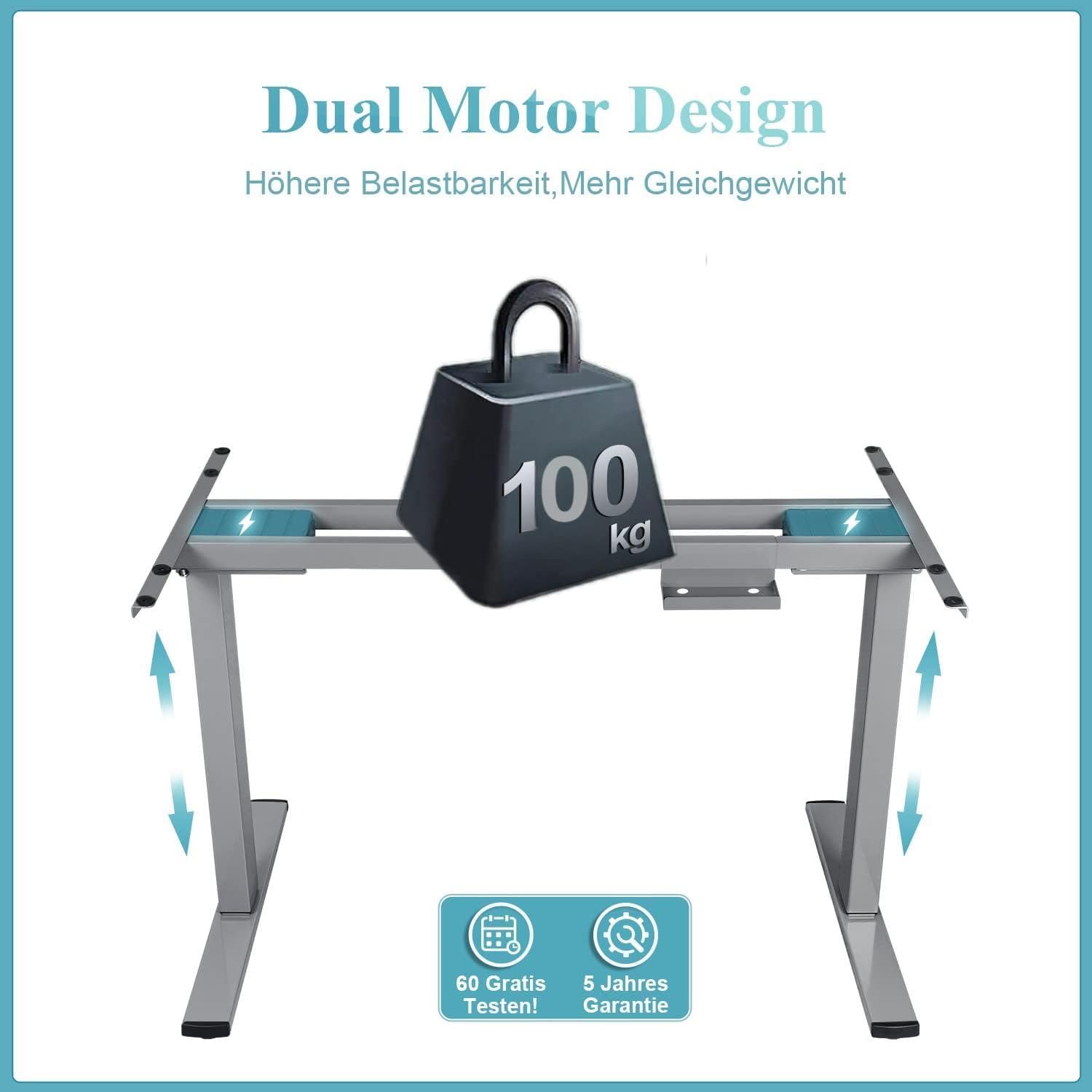 - Starker Doppelmotor-Antrieb: Zwei leistungsstarke Motoren aus kaltgewalztem Stahl sorgen für eine sanfte, stabile Höhenverstellung und erhöhen die maximale Tragkraft auf beeindruckende 100 kg.