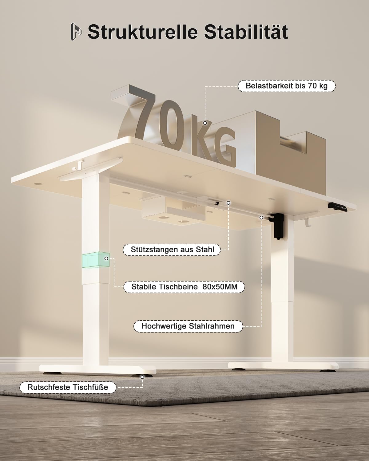 - Elektrisch verstellbare Höhe im Bereich von 72 cm bis 116 cm