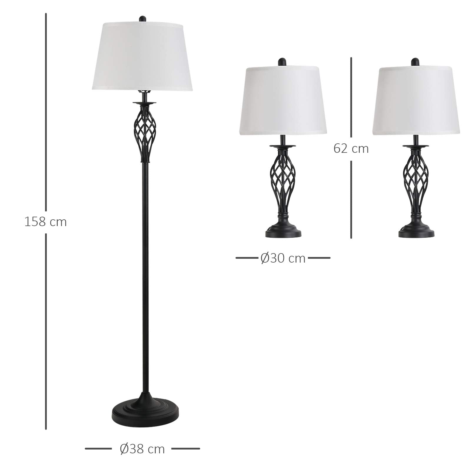 - Praktisches 3-in-1-Set: Bestehend aus einer hohen Stehlampe und zwei passenden Tischlampen, sorgt dieses Trio für ein stimmiges und einheitliches Erscheinungsbild in Ihrer Einrichtung.