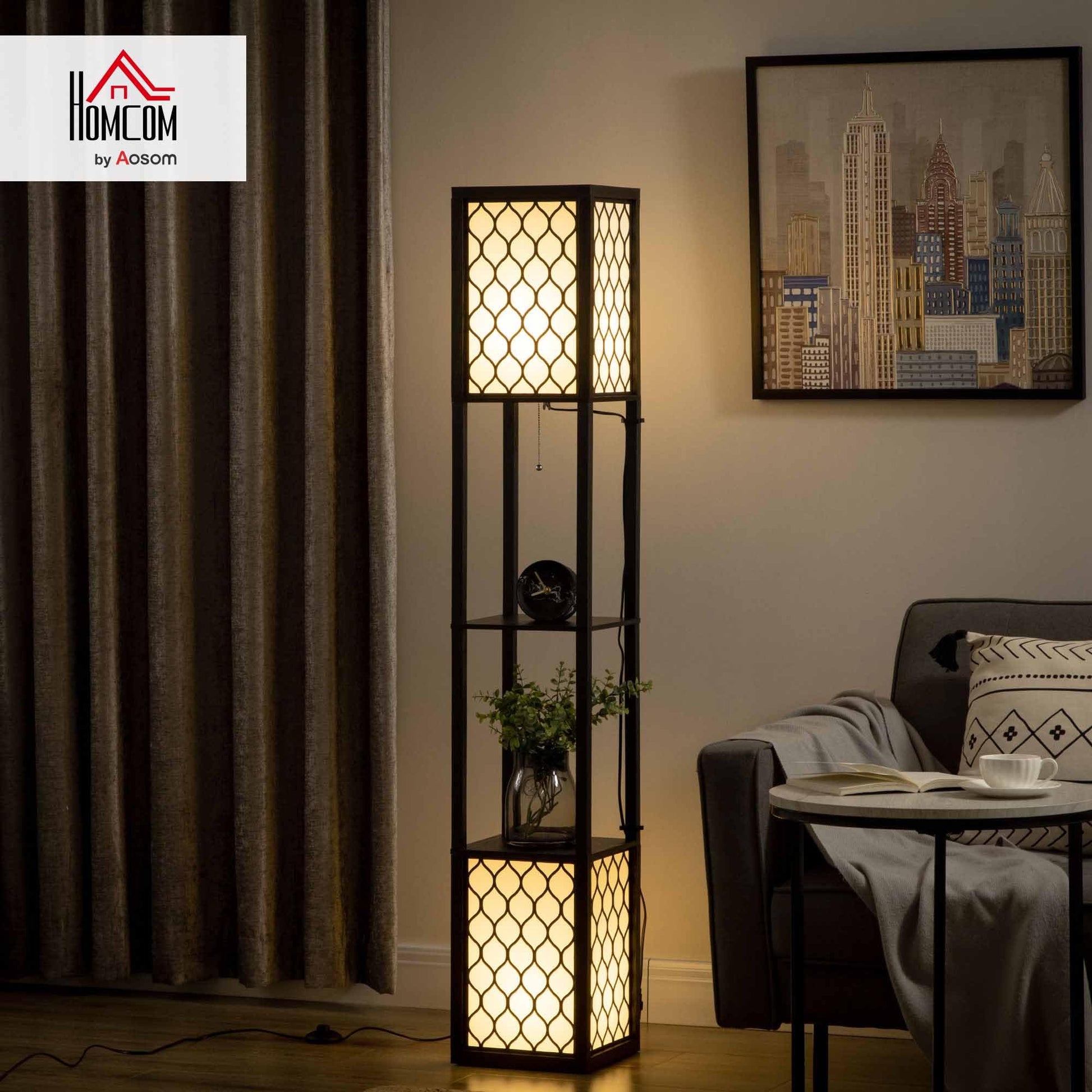 HOMCOM Stehlampe mit Regal und Doppellicht – Schwarz