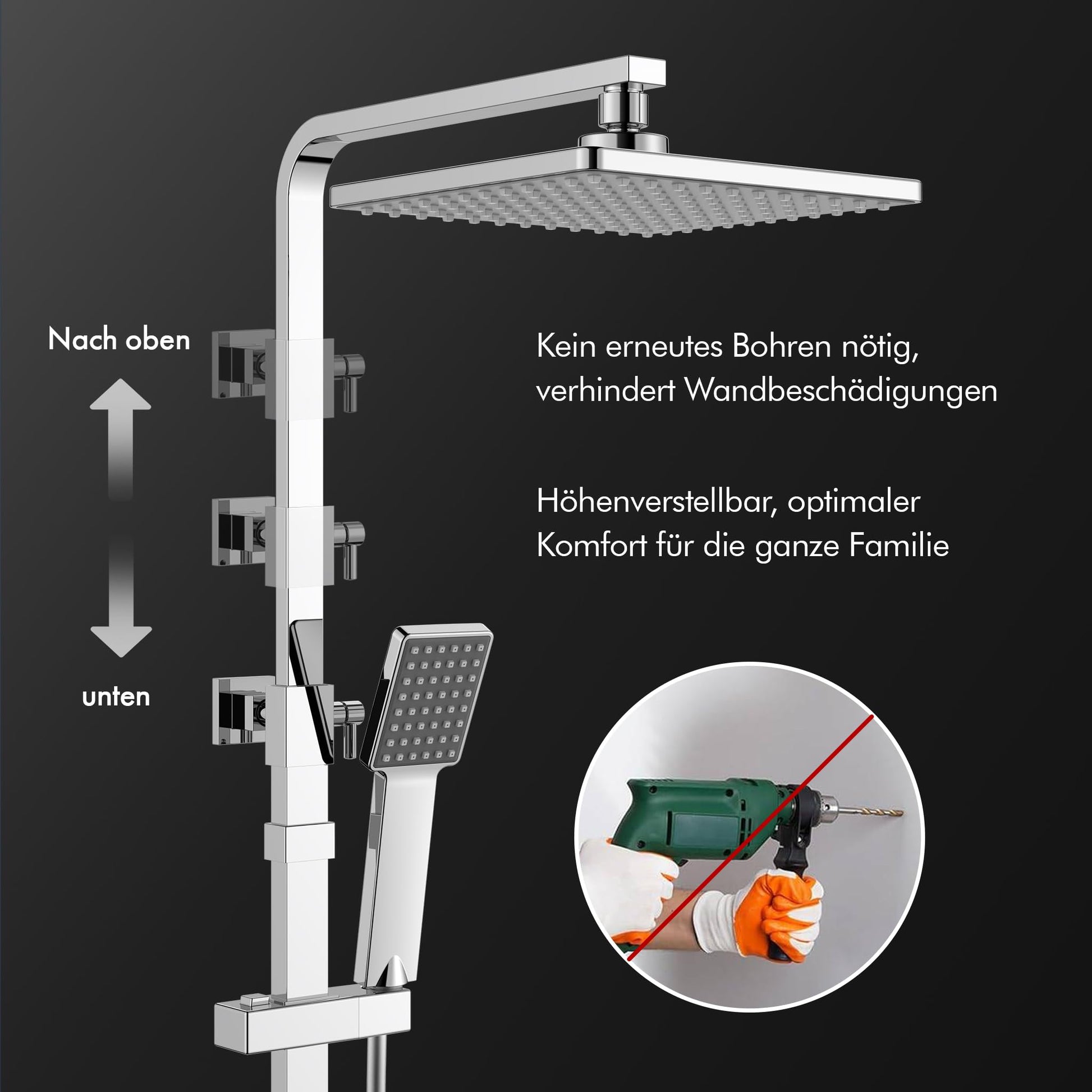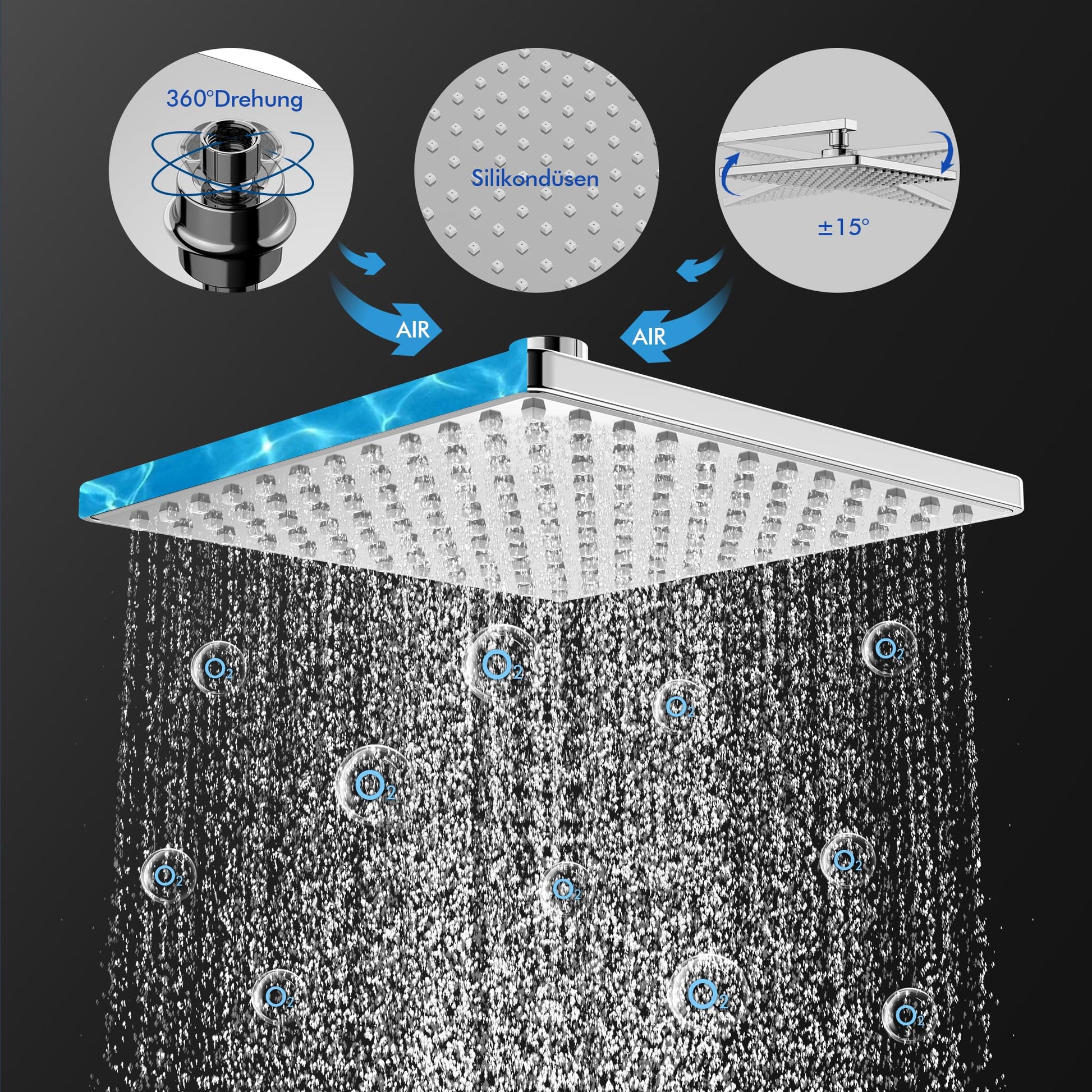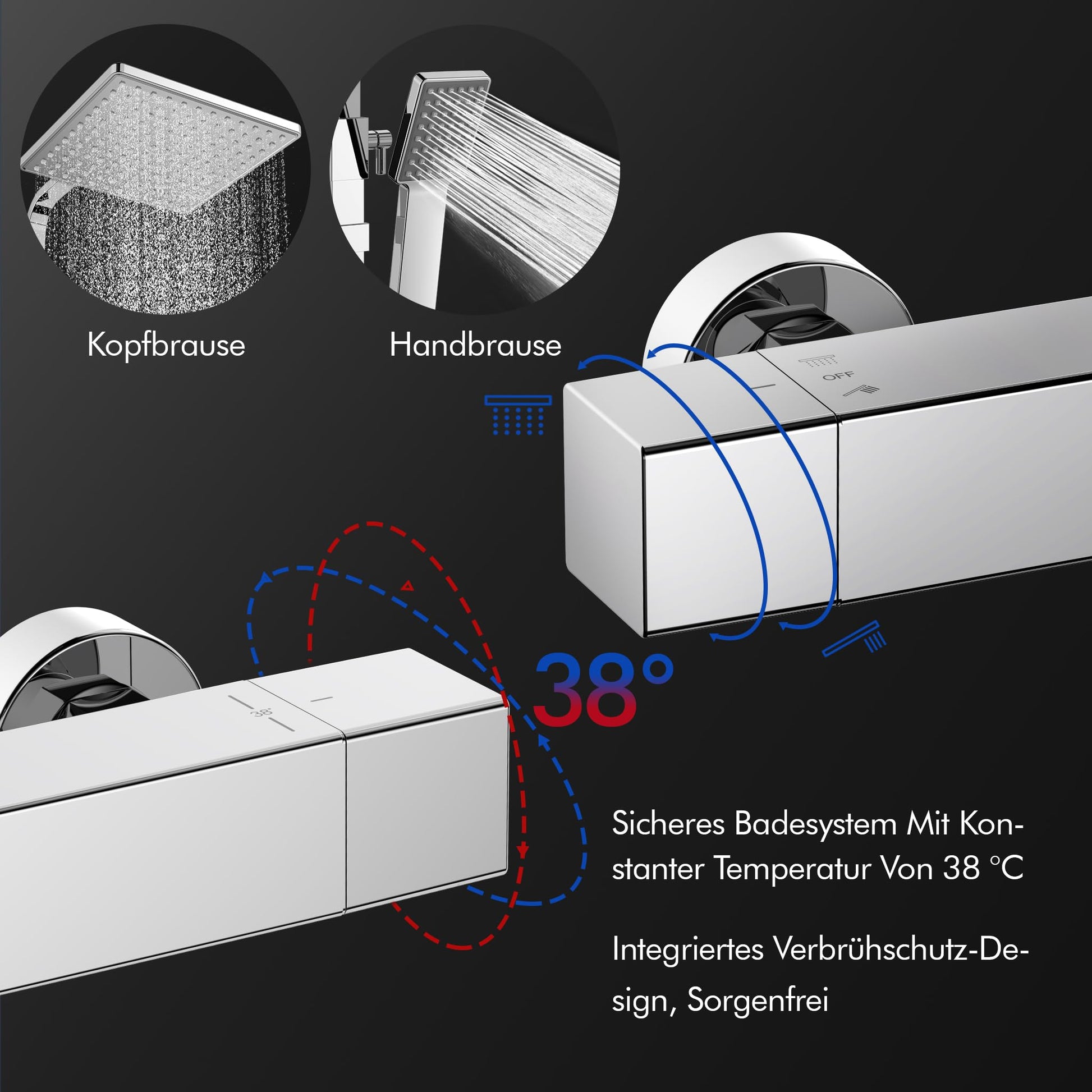 HOMELODY Duschsystem mit Thermostat Regendusche - Chrom