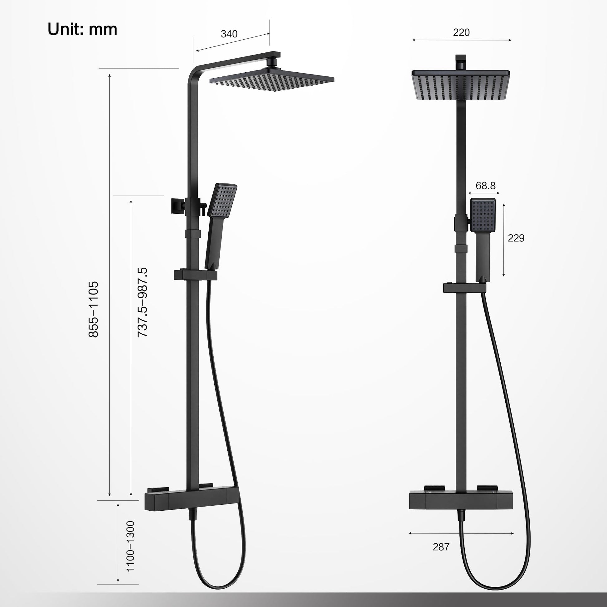 Verwandeln Sie Ihr Badezimmer in eine moderne Wohlfühloase mit diesem kompletten Duschsystem in edlem Schwarz. Es kombiniert stilvolles Design mit durchdachter Funktionalität für ein erstklassiges Duscherlebnis im eigenen Zuhause.