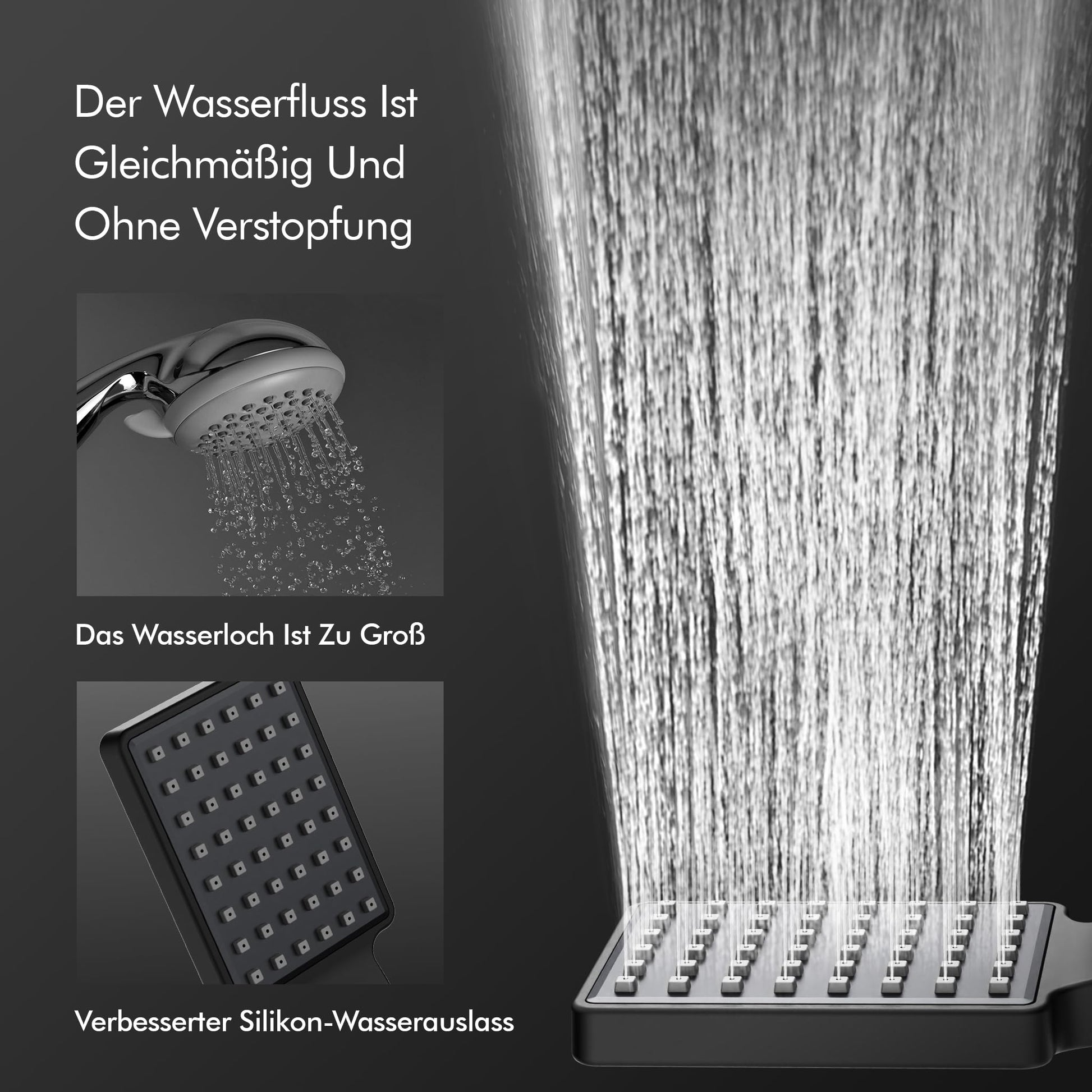 - Material Duschköpfe: ABS, mehrschichtig schwarz beschichtet