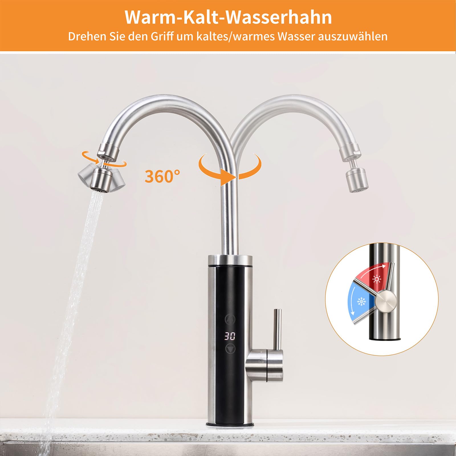 - Sofort heisses Wasser: Mit einer starken Leistung von 3400 Watt erhitzt diese Armatur Wasser in weniger als 3 Sekunden auf bis zu 60 °C. Ideal für Küche, Garten oder Camping.