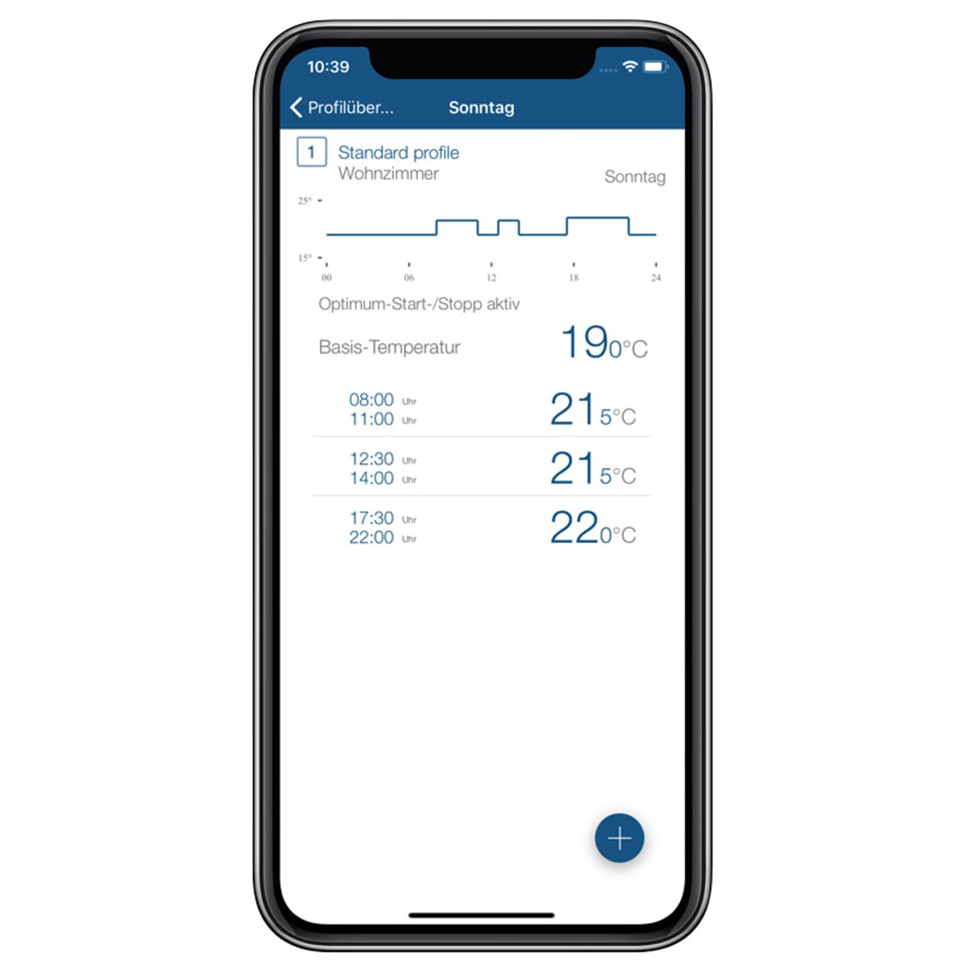 - Personalisierte Heizprofile: Erstellen Sie bis zu drei individuelle Zeitpläne mit bis zu 13 täglichen Temperaturänderungen, um Ihren Tagesablauf perfekt abzubilden.
