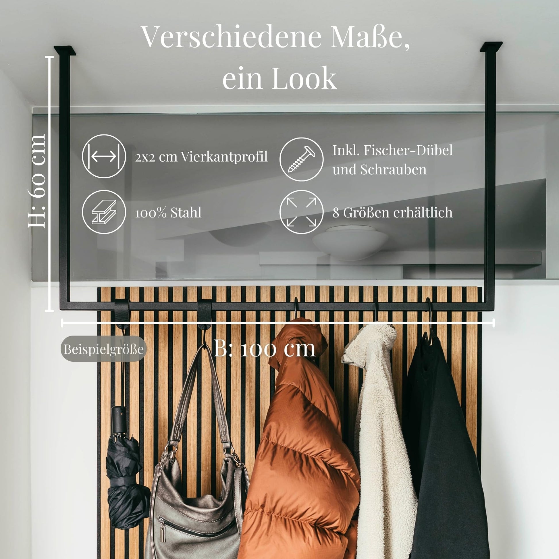 - Hohe Belastbarkeit: Gefertigt aus massivem Stahl, bietet diese Garderobenstange eine beeindruckende Tragkraft von bis zu 30 kg und hält somit auch schwere Mäntel und Jacken mühelos.
