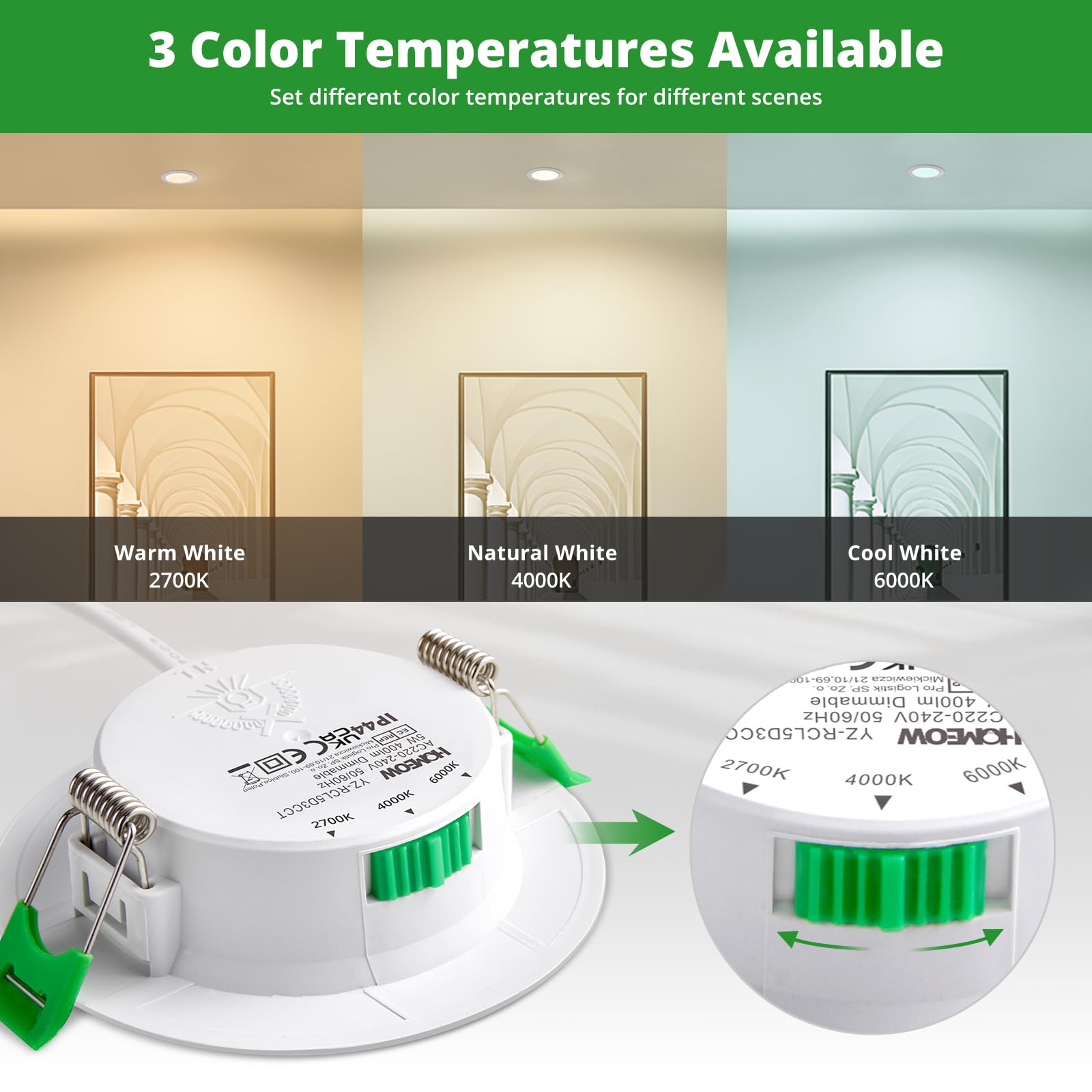 Die Farbtemperatur lässt sich einfach über einen Schalter direkt am Gehäuse jedes Spots einstellen. Sie können vor der Installation zwischen gemütlichem Warmweiss (2700 K), ausgewogenem Neutralweiss (4000 K) und aktivierendem Kaltweiss (6000 K) wählen.