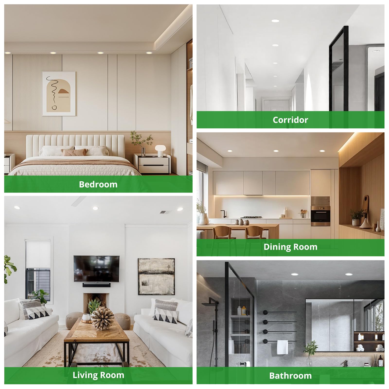 - Ultraflache Bauweise: Mit einer Einbautiefe von nur 24 mm sind die Spots perfekt für Decken mit geringem Platzangebot. Sie passen in Standard-Bohrungen von 68 mm bis 78 mm.