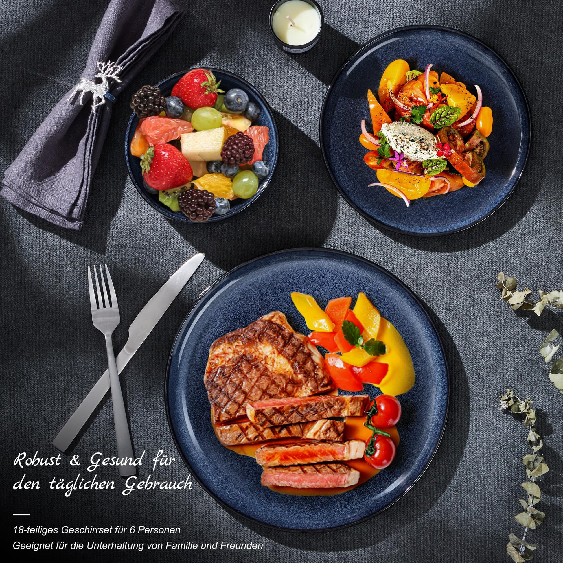 Homikit Geschirrset 18-tlg Steinzeug Tafelservice - Universum Blau