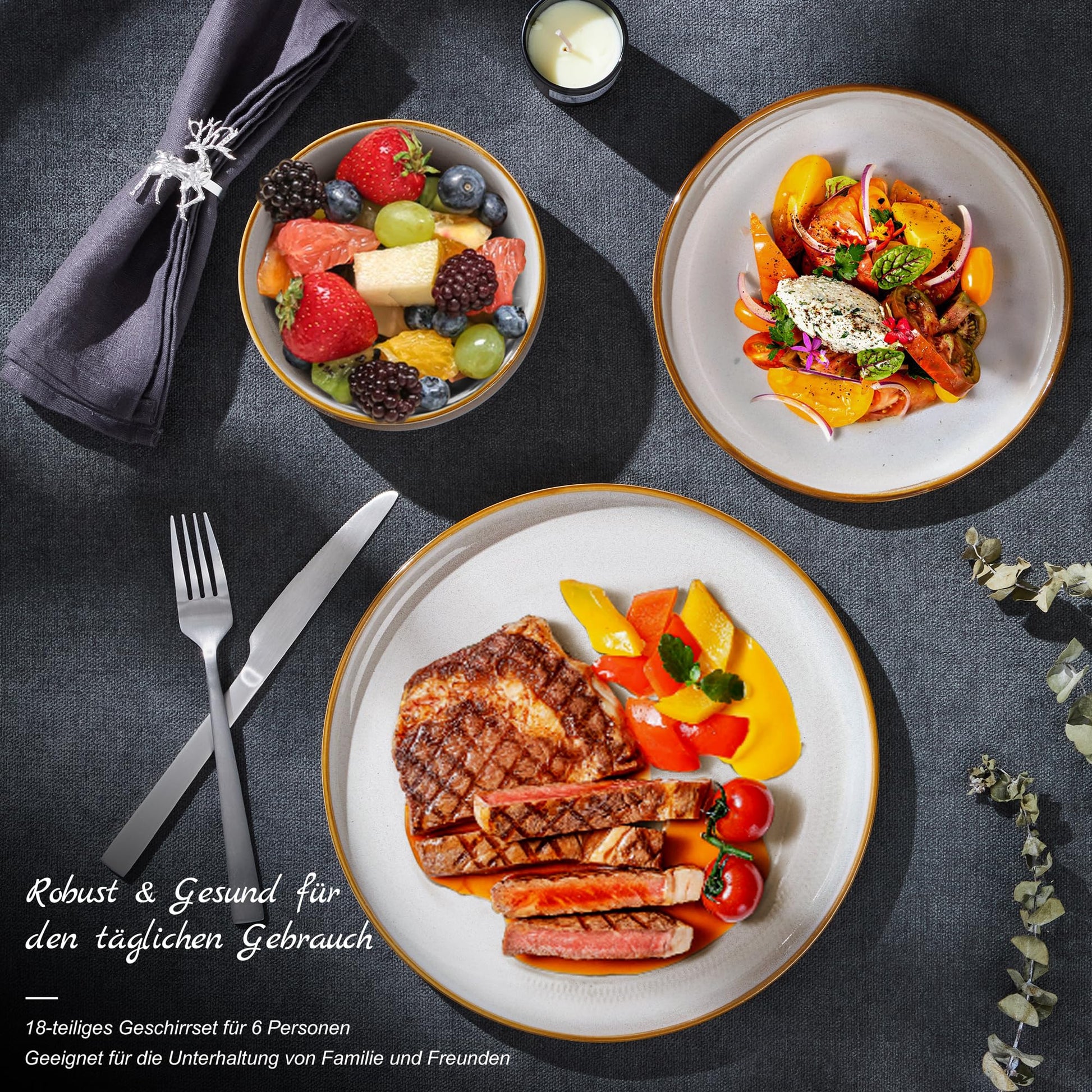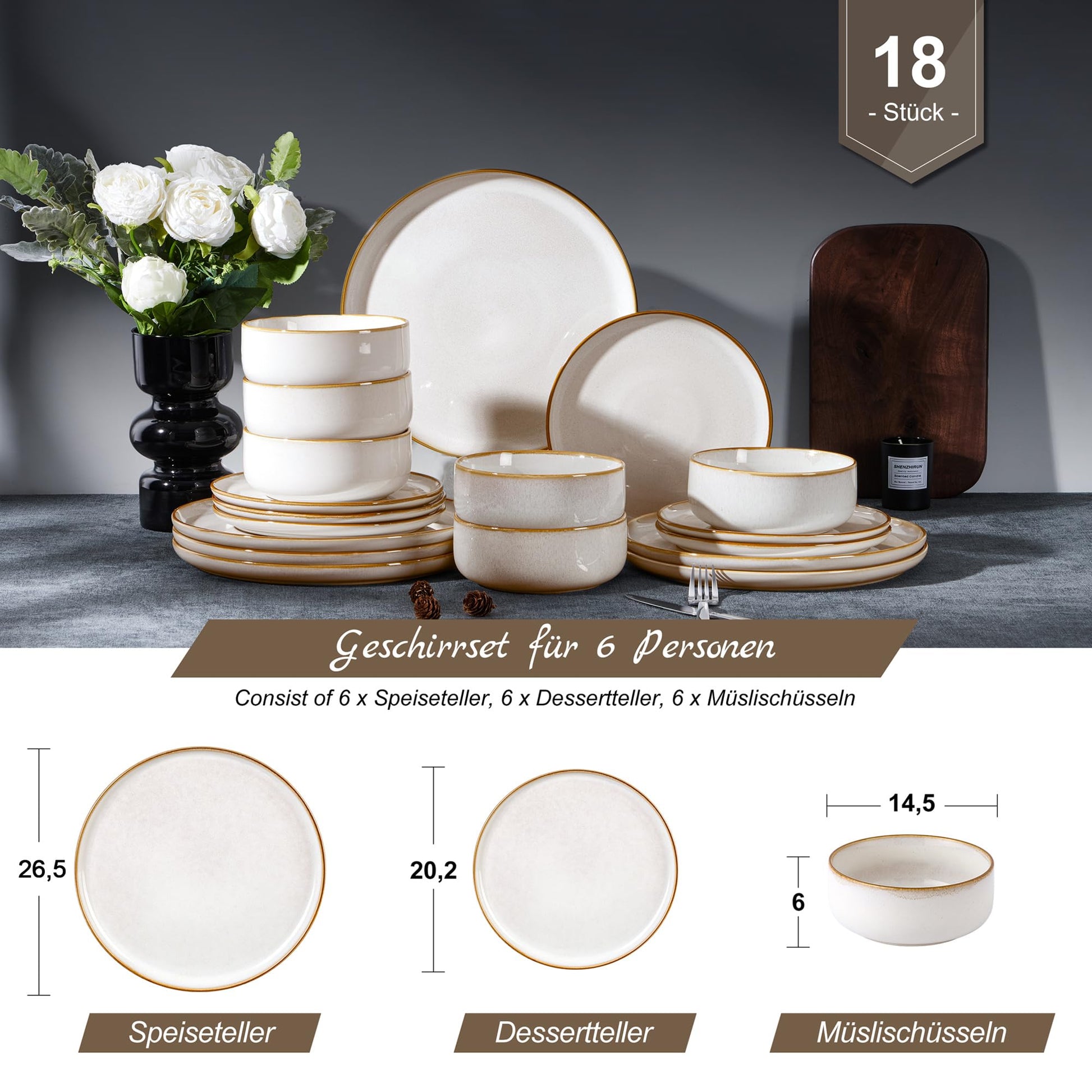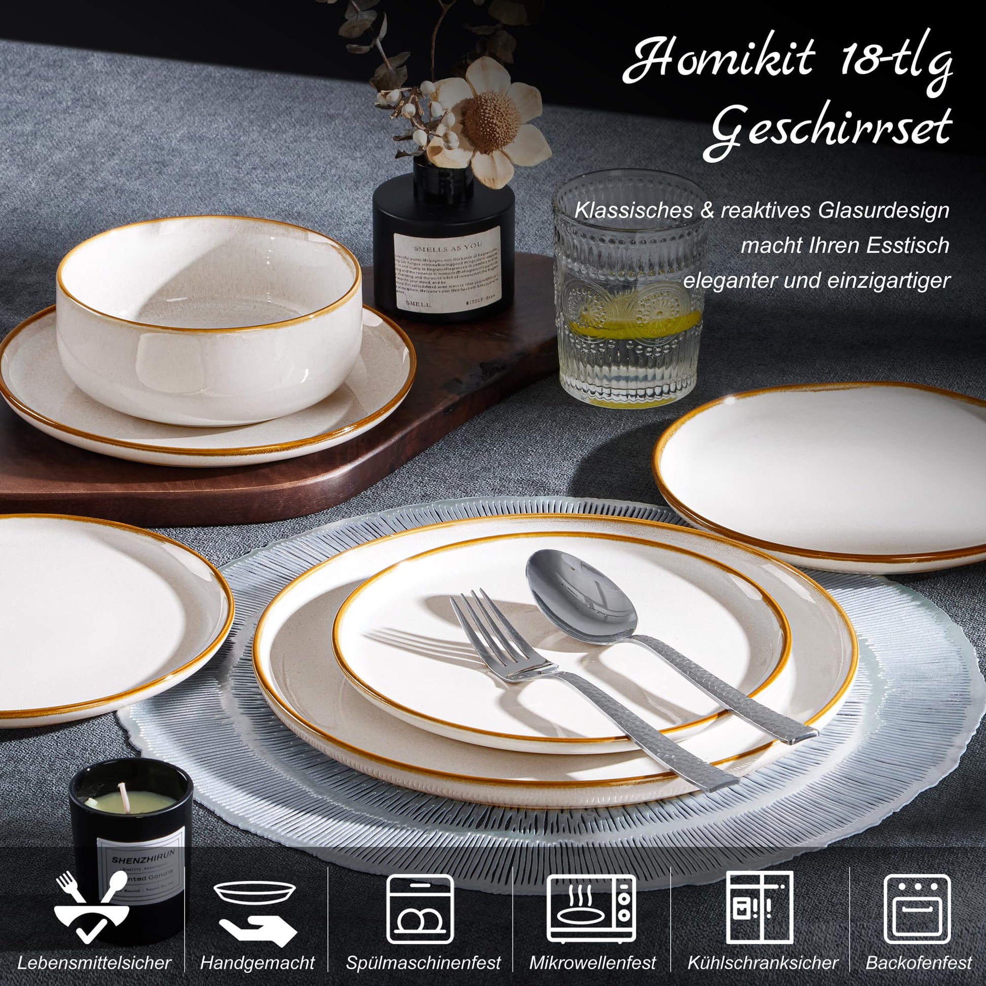 Homikit Geschirrset 18-tlg Steinzeug für 6 Personen – Jupiter Beige