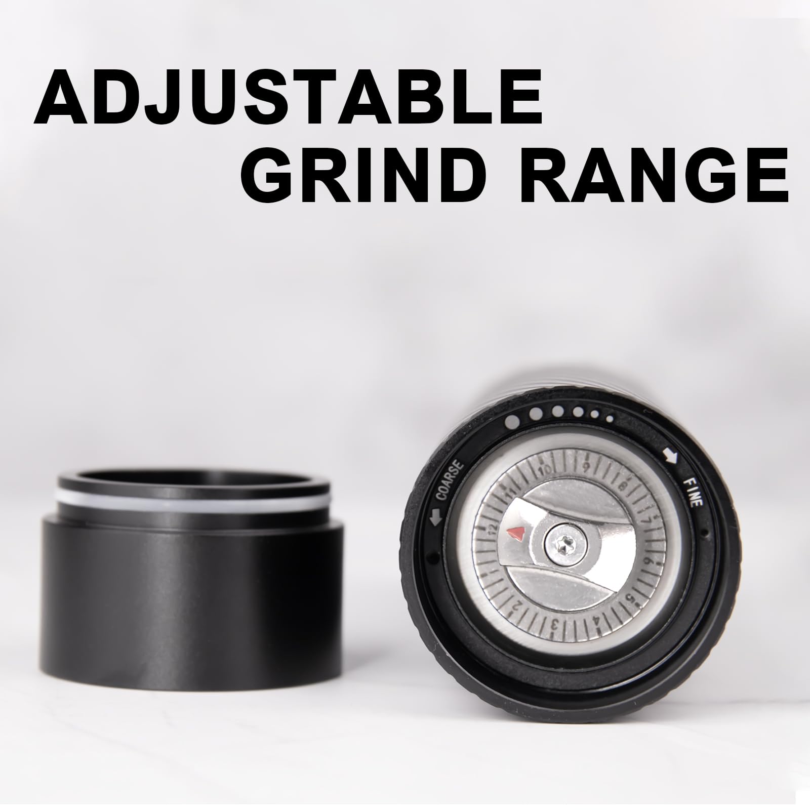 - Einstellbarer Mahlgrad: Wählen Sie aus mehreren Mahlstufen – von fein bis grob. Die Markierungen sind präzise geätzt und nutzen sich nicht ab.