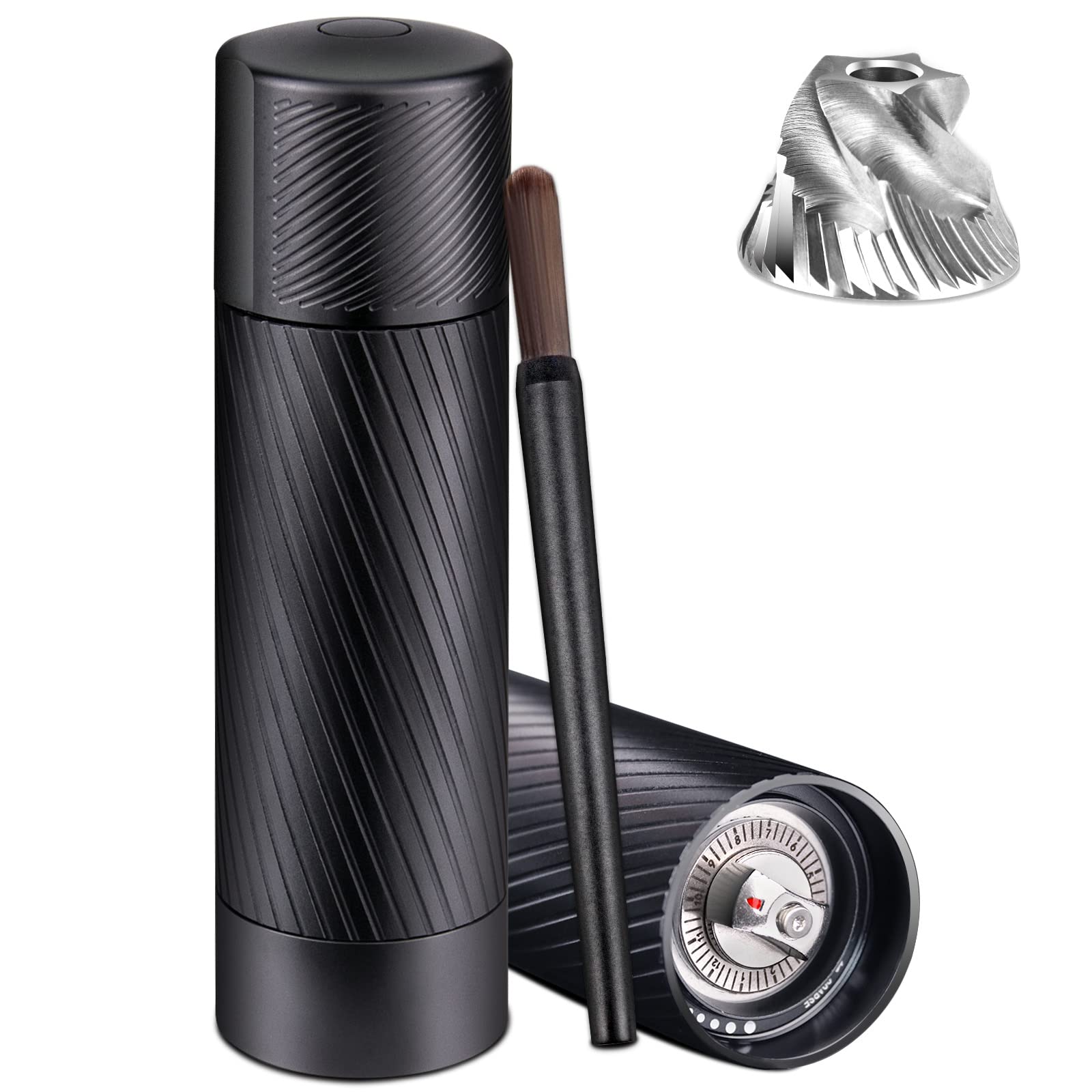 Die Mühle kombiniert ein robustes Gehäuse aus einer hochwertigen Aluminiumlegierung mit einem Präzisions-Mahlwerk aus rostfreiem Stahl (Härte 55-58 HRC). Diese Kombination sorgt für aussergewöhnliche Langlebigkeit, sowohl im täglichen Gebrauch zu Hause als auch in der professionellen Gastronomie.