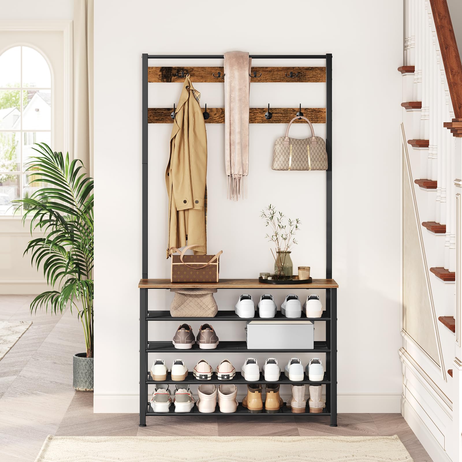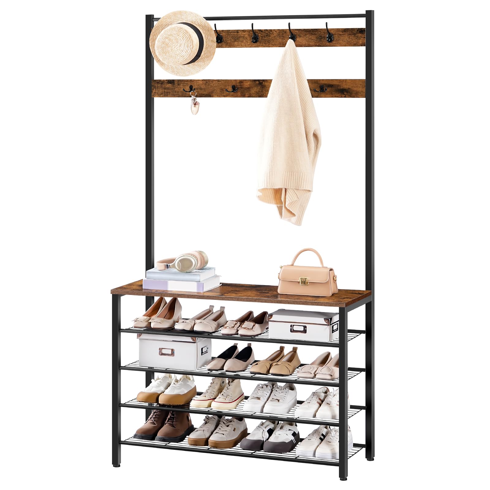 HOOBRO Garderobenständer EBF801MT01 mit Schuhregal – Dunkelbraun