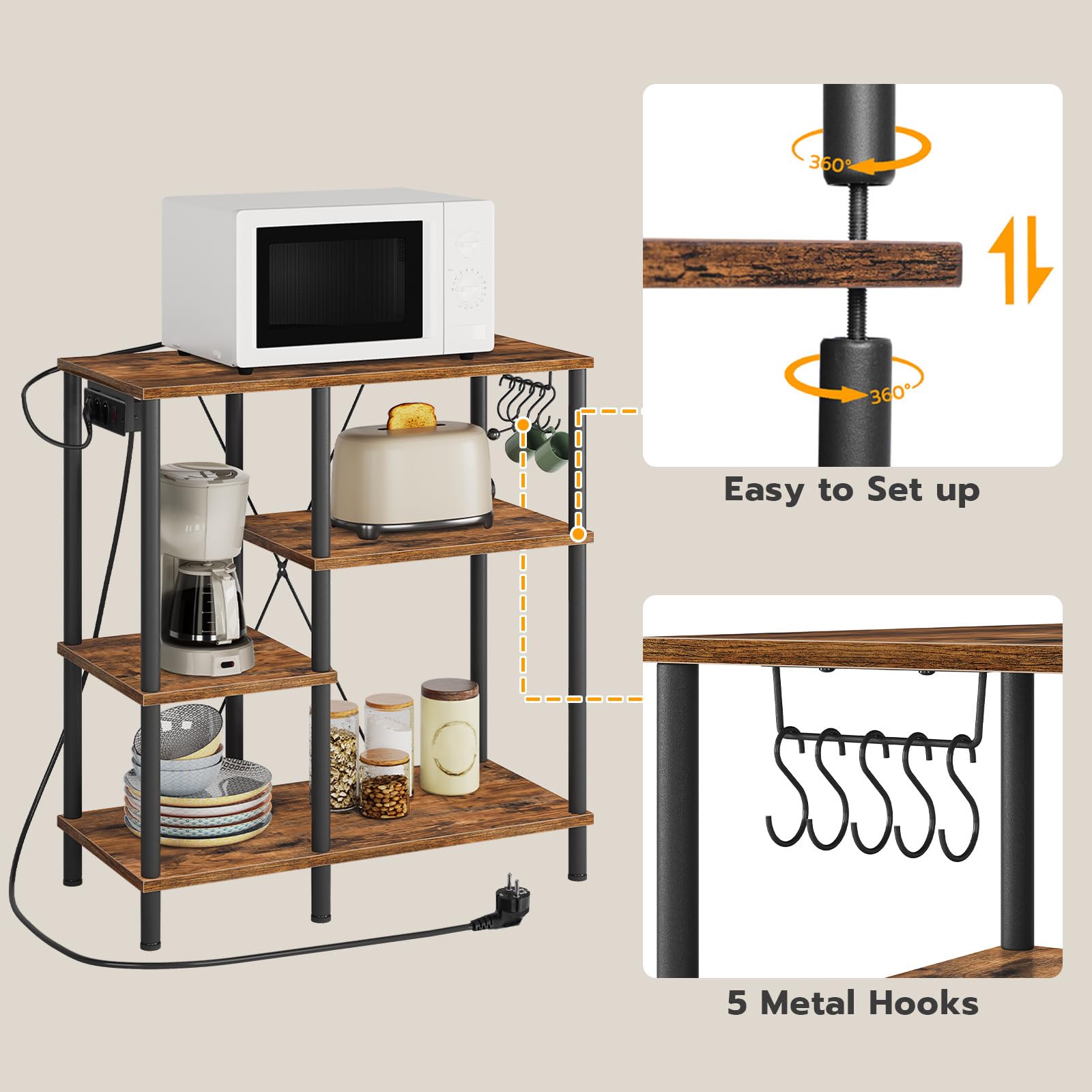 HOOBRO EBF07CHB01 Küchenregal – mit Steckdosen, Vintagebraun