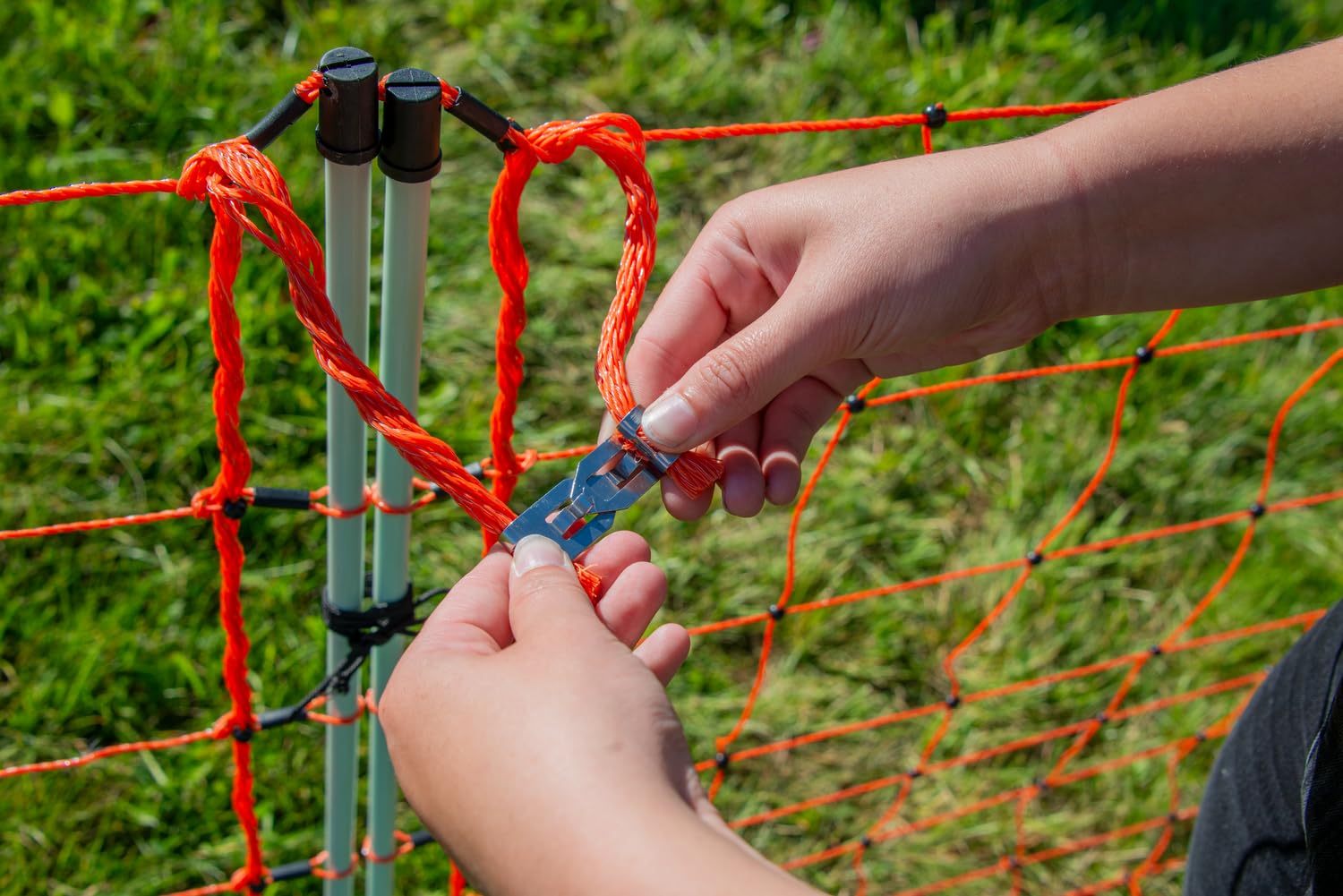 - Zuverlässige Stromführung: Stromführende Kunststofflitzen, die mit robustem, rostfreiem Stahldraht verstärkt sind, garantieren eine konstante Hütesicherheit und eine lange Lebensdauer des Netzes.