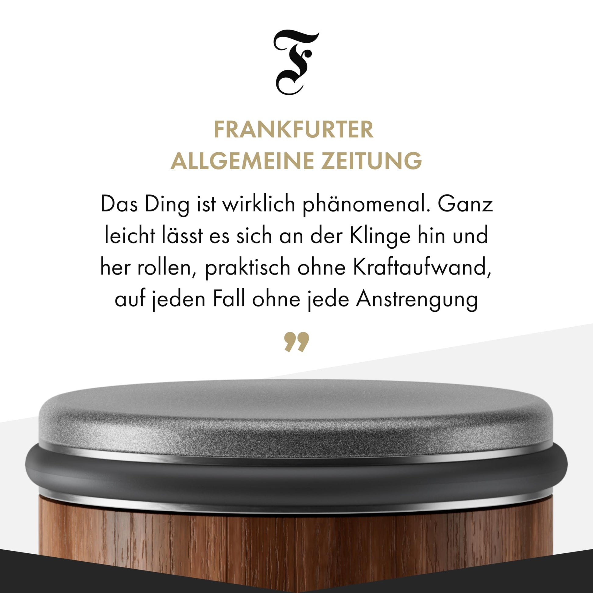 Verleihen Sie Ihren Küchenmessern mühelos eine professionelle Schärfe. Dieser innovative Rollschleifer kombiniert edles Design aus Nussbaumholz mit einer ausgeklügelten Technik für konstant erstklassige Ergebnisse.