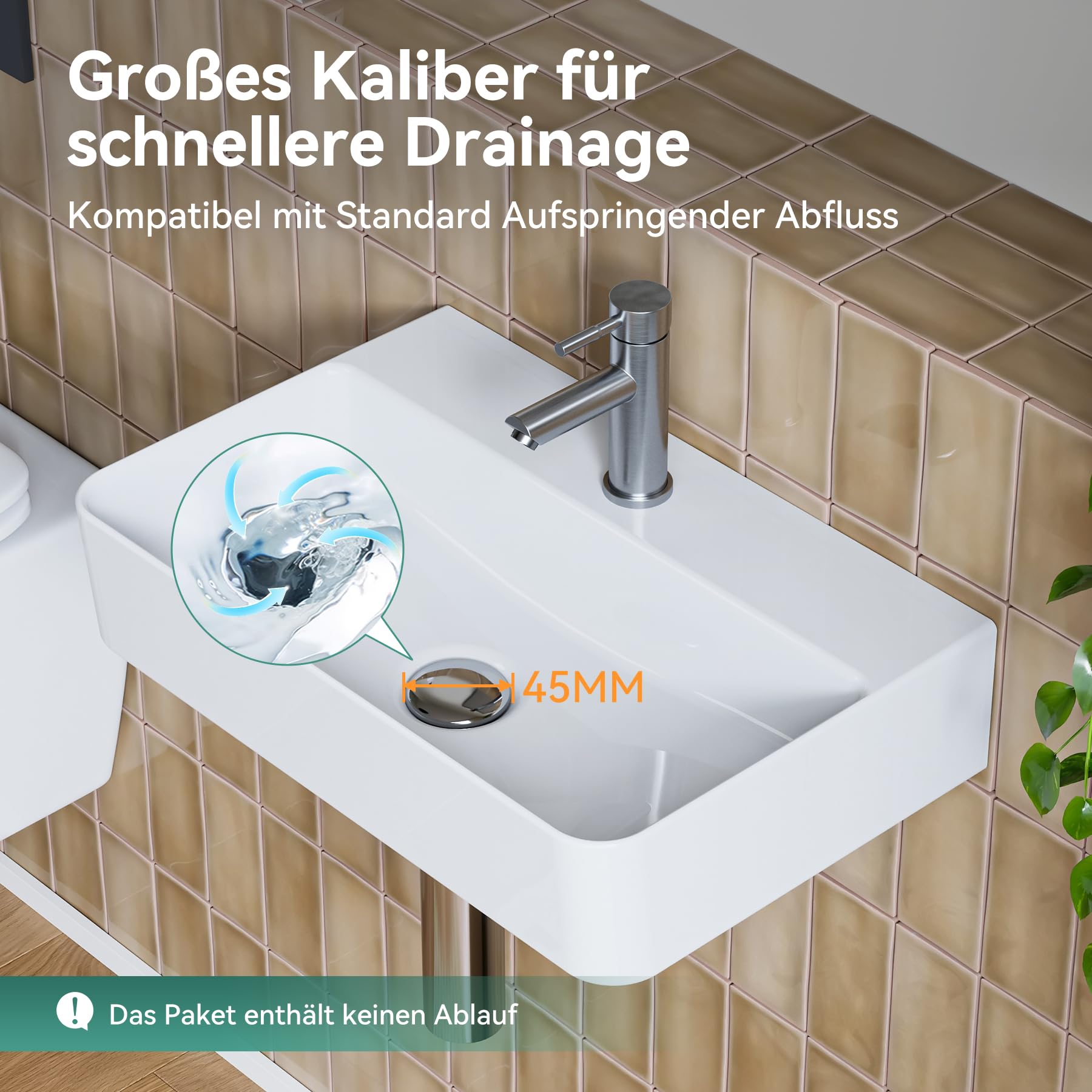 HOROW Rechteck Hängewaschbecken Keramik - Weiss 46x30cm ohne Überlauf