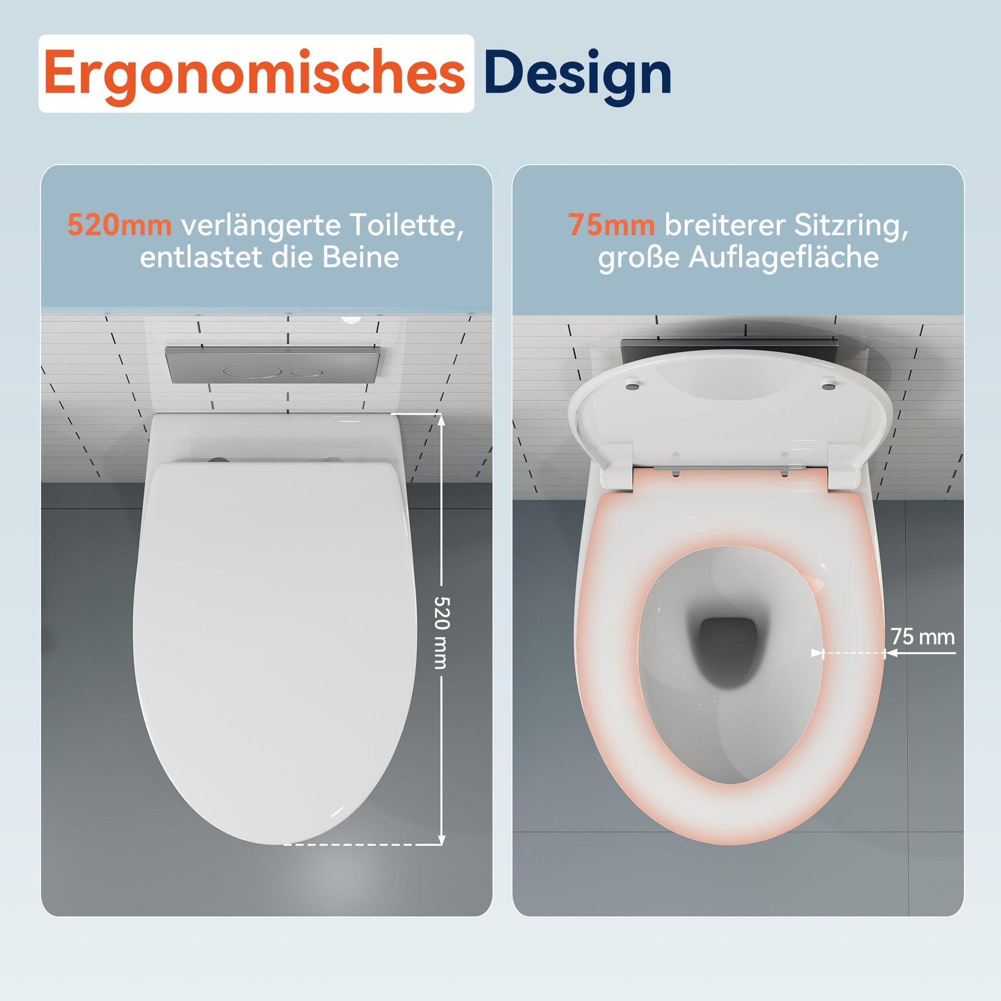 HOROW Hänge-WC Set D-Form 52 cm – Absenkautomatik WC-Sitz