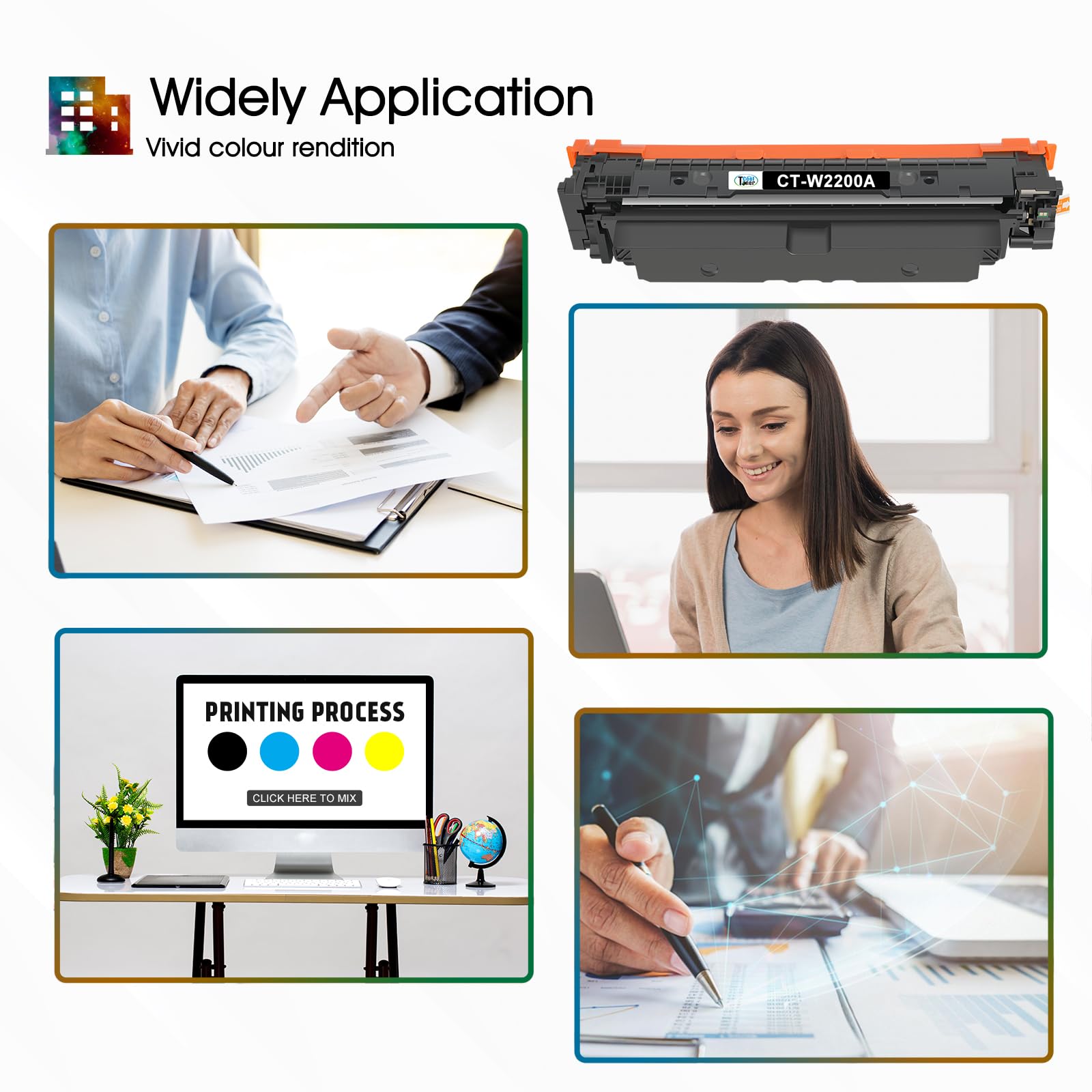 - Lieferumfang: 1x Schwarz (W2200A), 1x Cyan (W2201A), 1x Gelb (W2202A), 1x Magenta (W2203A).