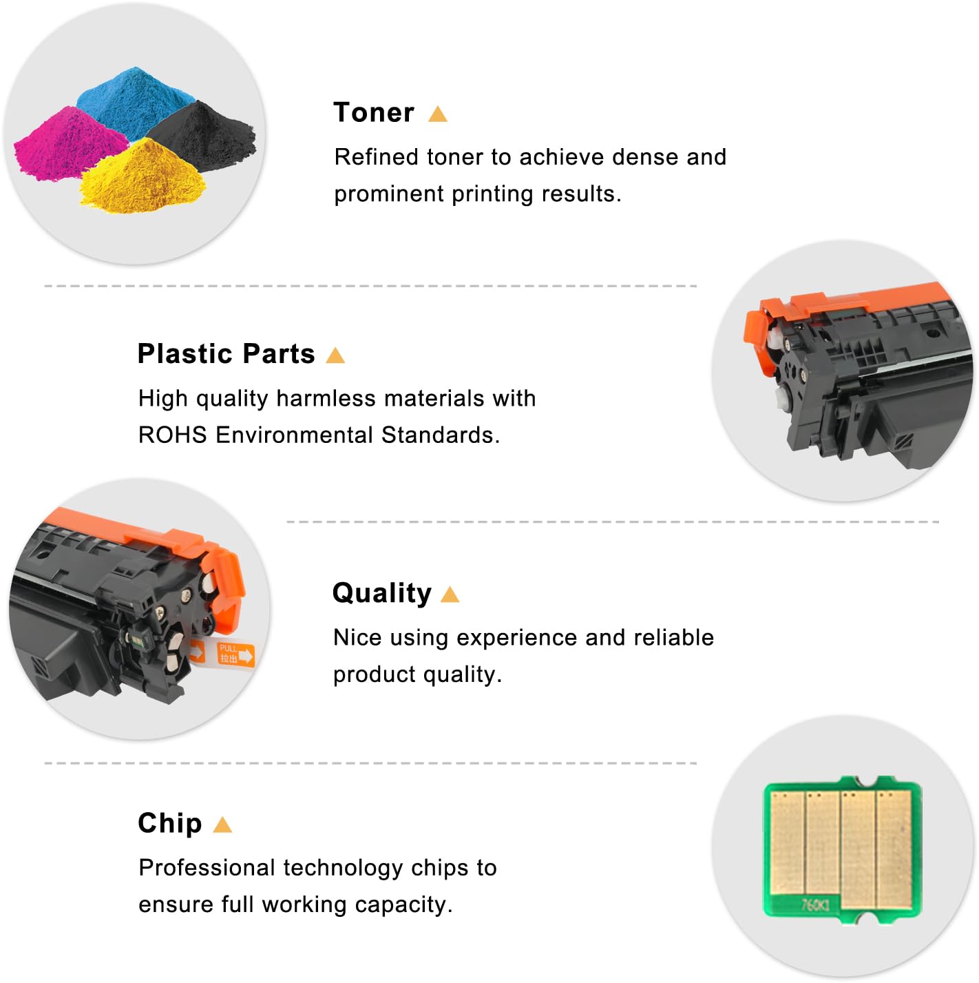 - Integrierter Chip: Jede Tonerkartusche ist bereits mit einem modernen Chip ausgestattet und sofort einsatzbereit.