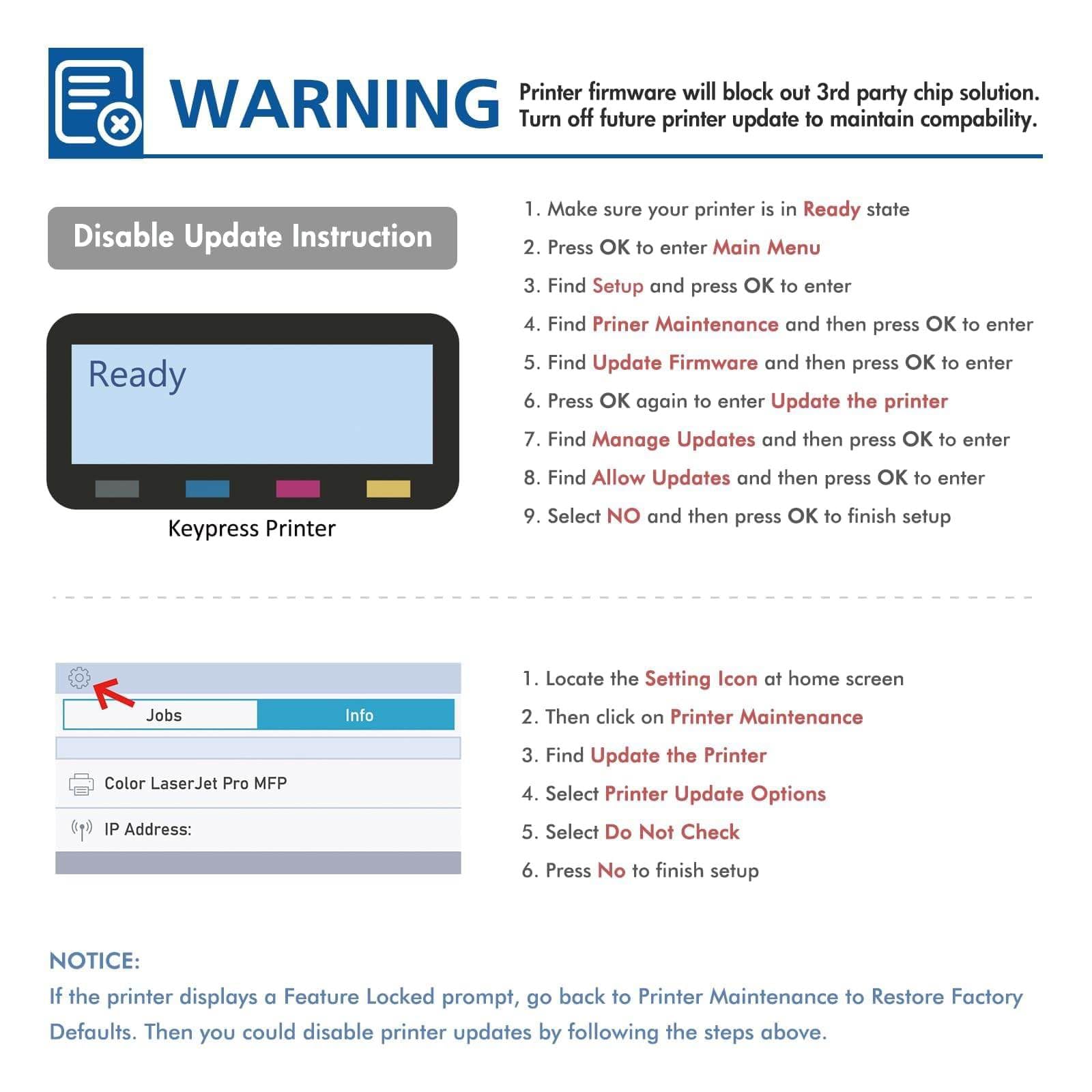 Nein, ein Umbau ist nicht nötig. Jede Tonerkartusche ist bereits mit einem neuen Chip ausgestattet. Dadurch erkennt Ihr Drucker den Toner sofort, was Ihnen eine einfache Installation wie beim Original ermöglicht.