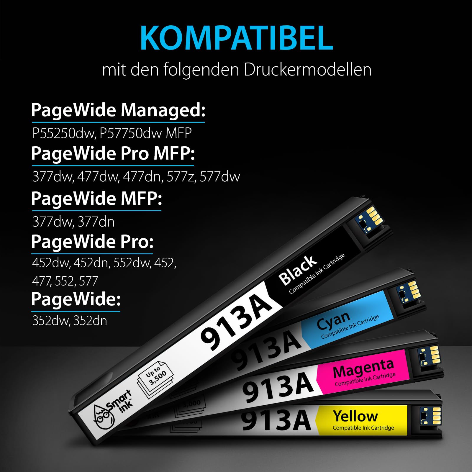 - Kompatible Drucker: Entwickelt für HP PageWide 352dw/dn, PageWide Pro 452dw/dn, 477dw/dn, 552dw, 577dw/z, PageWide Multifunction 377dw/dn sowie PageWide Managed P55250dw und P57750dw MFP.