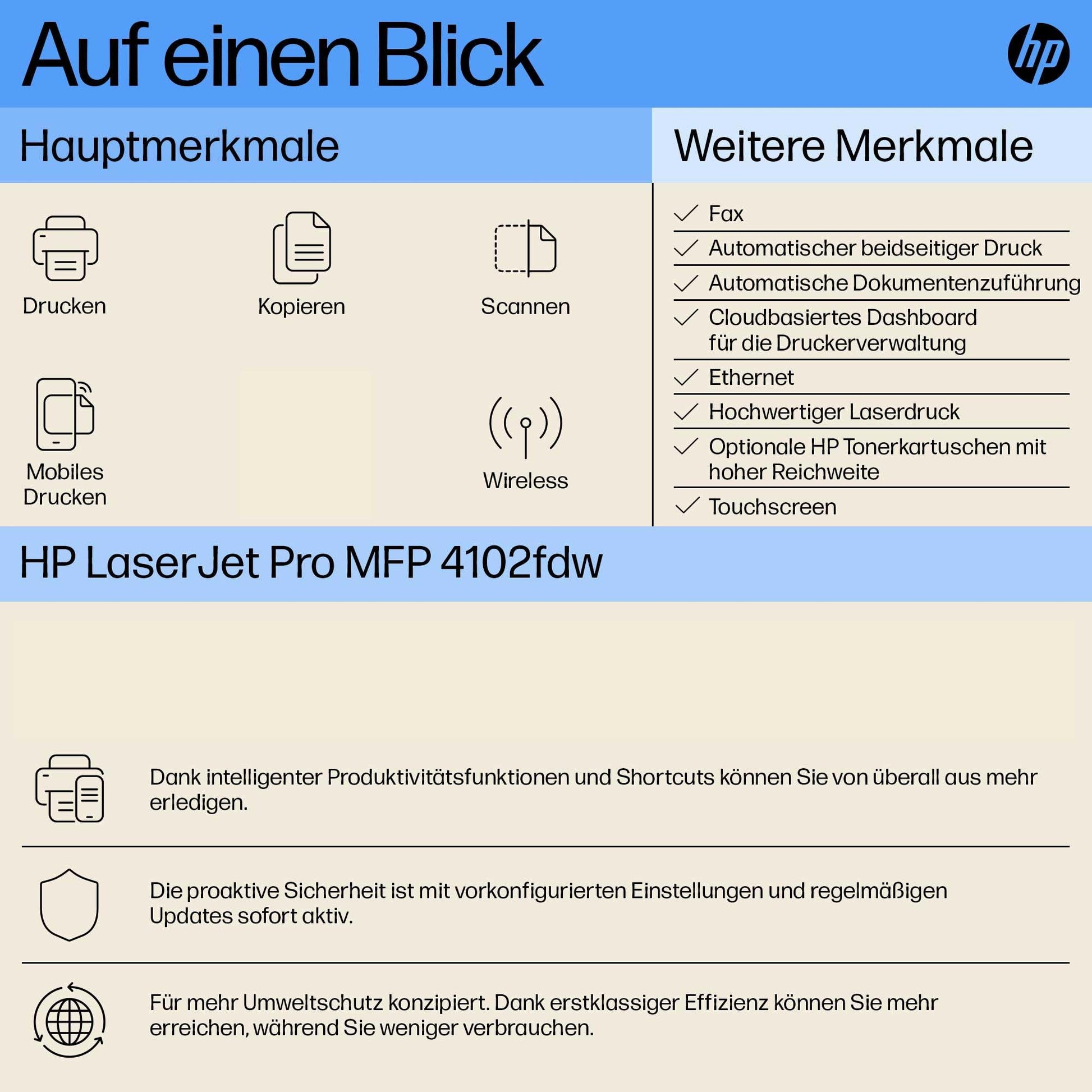 HP LaserJet Pro MFP 4102fdw Multifunktionsdrucker Schwarz-Weiss