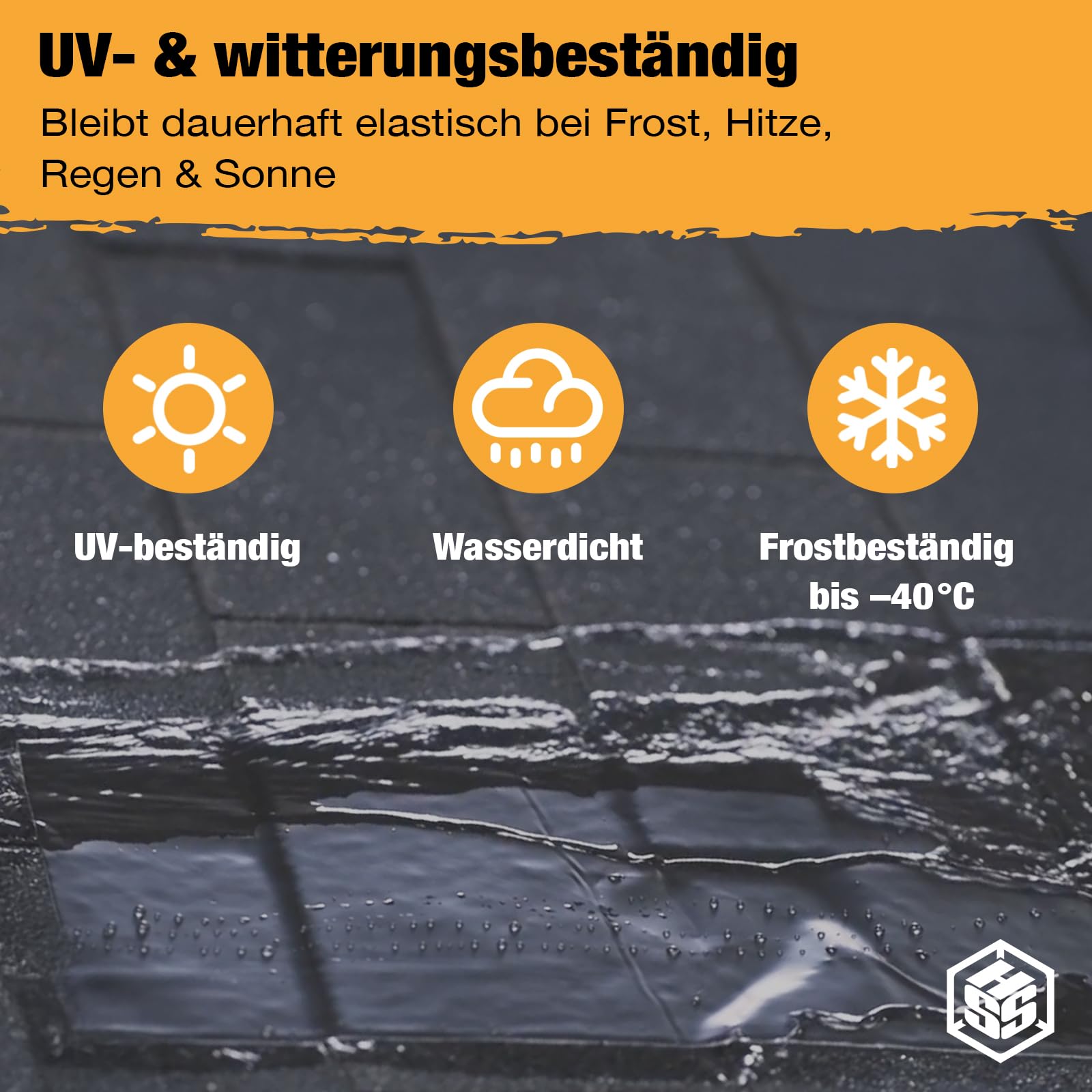- Sofort wasserdicht: Versiegelt Risse, Fugen und Anschlüsse umgehend nach der Anwendung. Es haftet zuverlässig auf Dachrinnen, Dachbahnen, Mauerabdeckungen und vielem mehr.