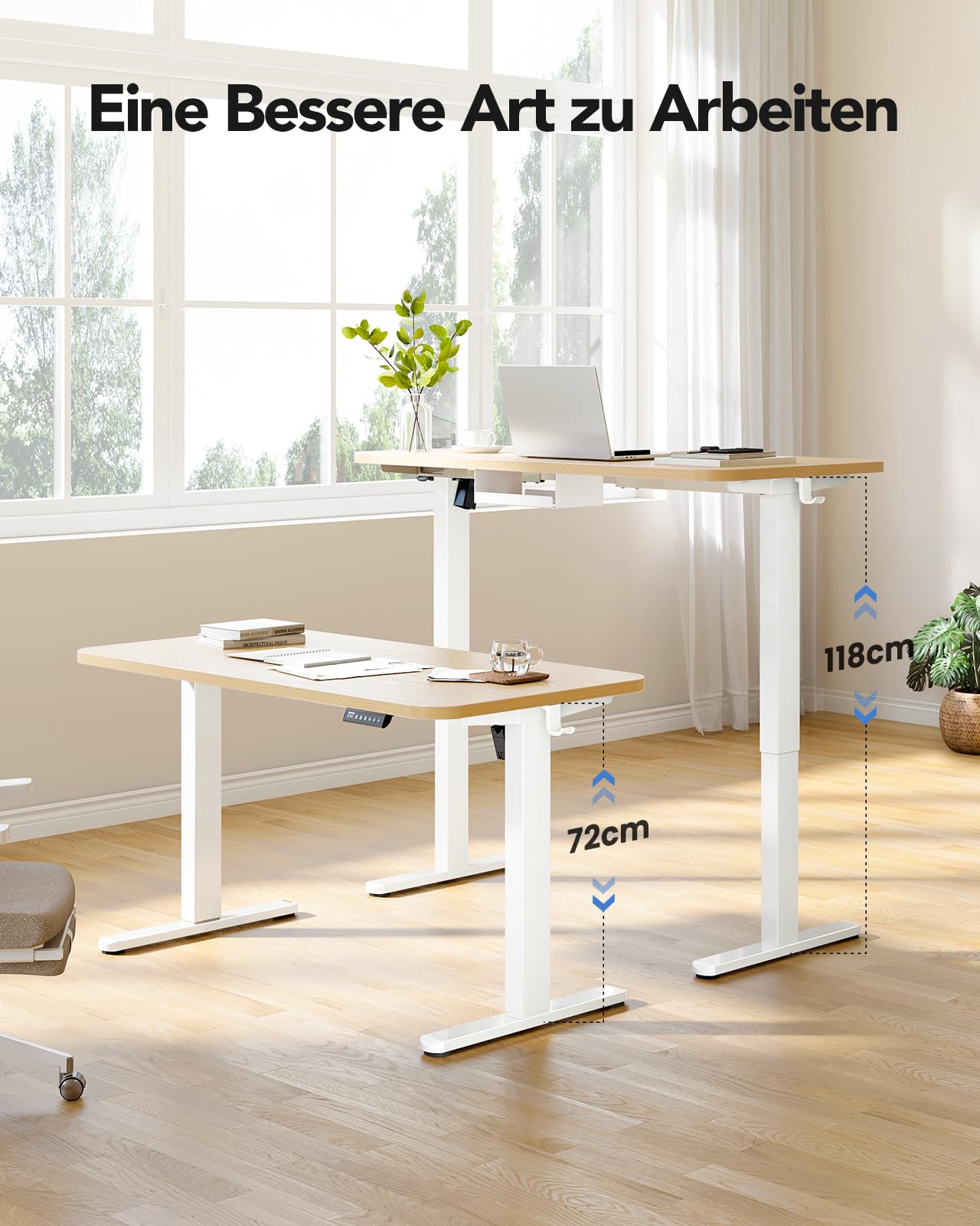 - Ergonomische Höheneinstellung: Wechseln Sie stufenlos zwischen einer Höhe von 72 cm und 118 cm. Mit den vier Speicherplätzen können Sie Ihre bevorzugten Sitz- und Stehpositionen bequem per Knopfdruck abrufen.