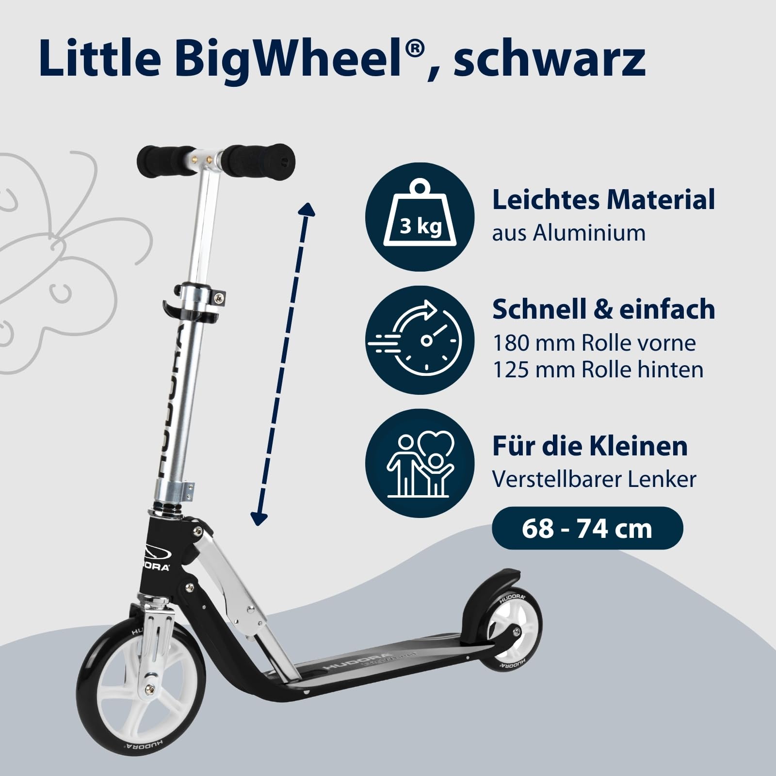 Der Little BigWheel wurde speziell für die Bedürfnisse von jungen Fahrerinnen und Fahrern entwickelt. Die grossen Räder vorne sorgen nicht nur für hohe Stabilität und eine angenehm sanfte Fahrt, sondern auch für ein tolles Tempo, das Spass macht. Gleichzeitig ermöglicht das kleinere Hinterrad einen tiefen Stand auf dem Trittbrett, was Anfängern Sicherheit gibt und den Einstieg erleichtert.