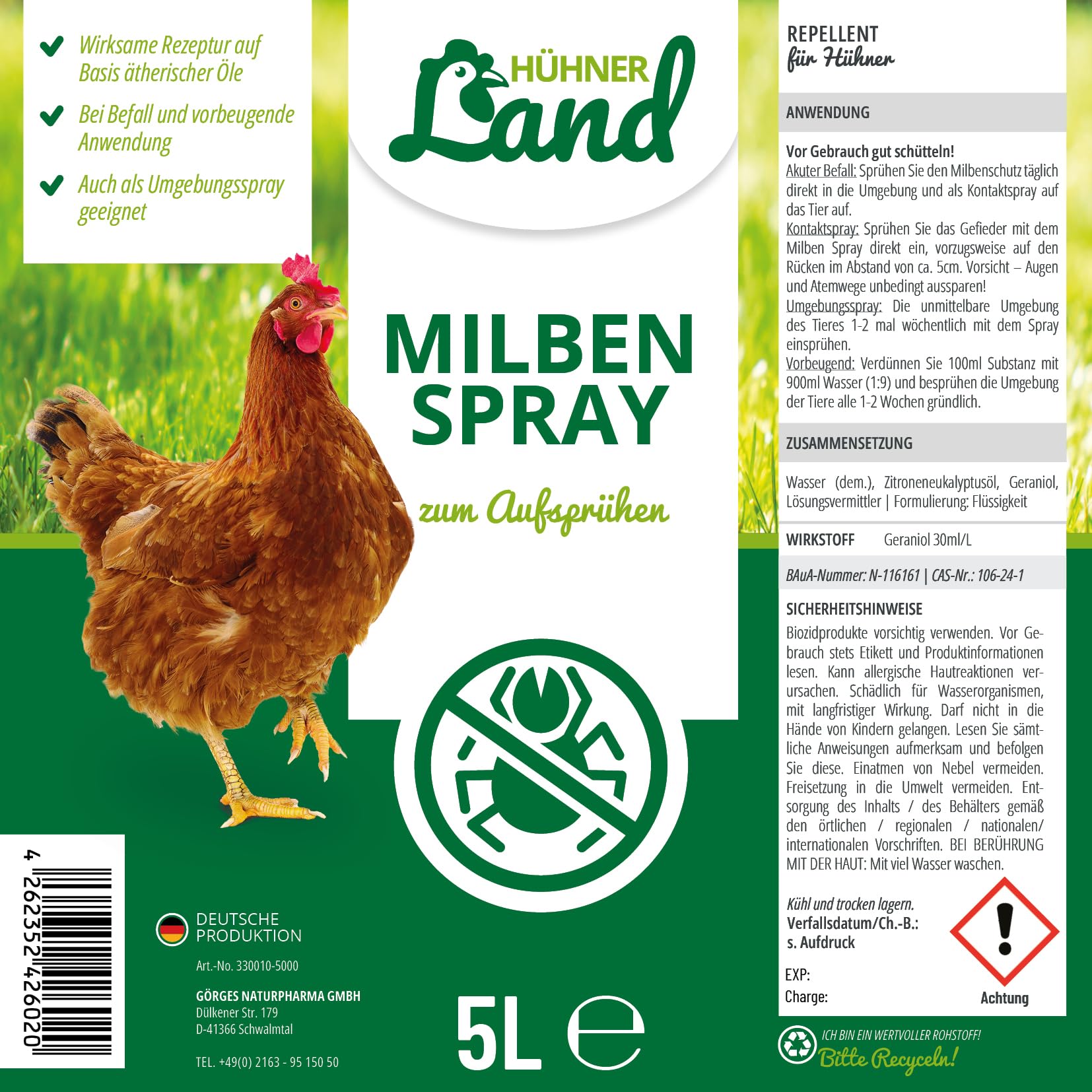 HÜHNER Land Milbenspray Hühner XL Set 6L inkl. Sprühflasche