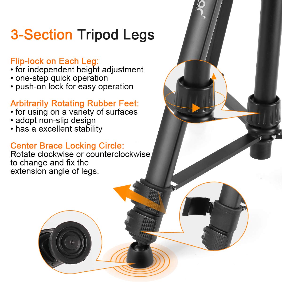 Das Stativ ist aus einer leichten (nur 1,2 kg) und gleichzeitig widerstandsfähigen Aluminiumlegierung gefertigt und kann Geräte bis zu 10 kg tragen. Mit einem Packmass von nur 60 cm, dem integrierten Tragegriff und der mitgelieferten Tragetasche ist es ideal für den mobilen Einsatz konzipiert.