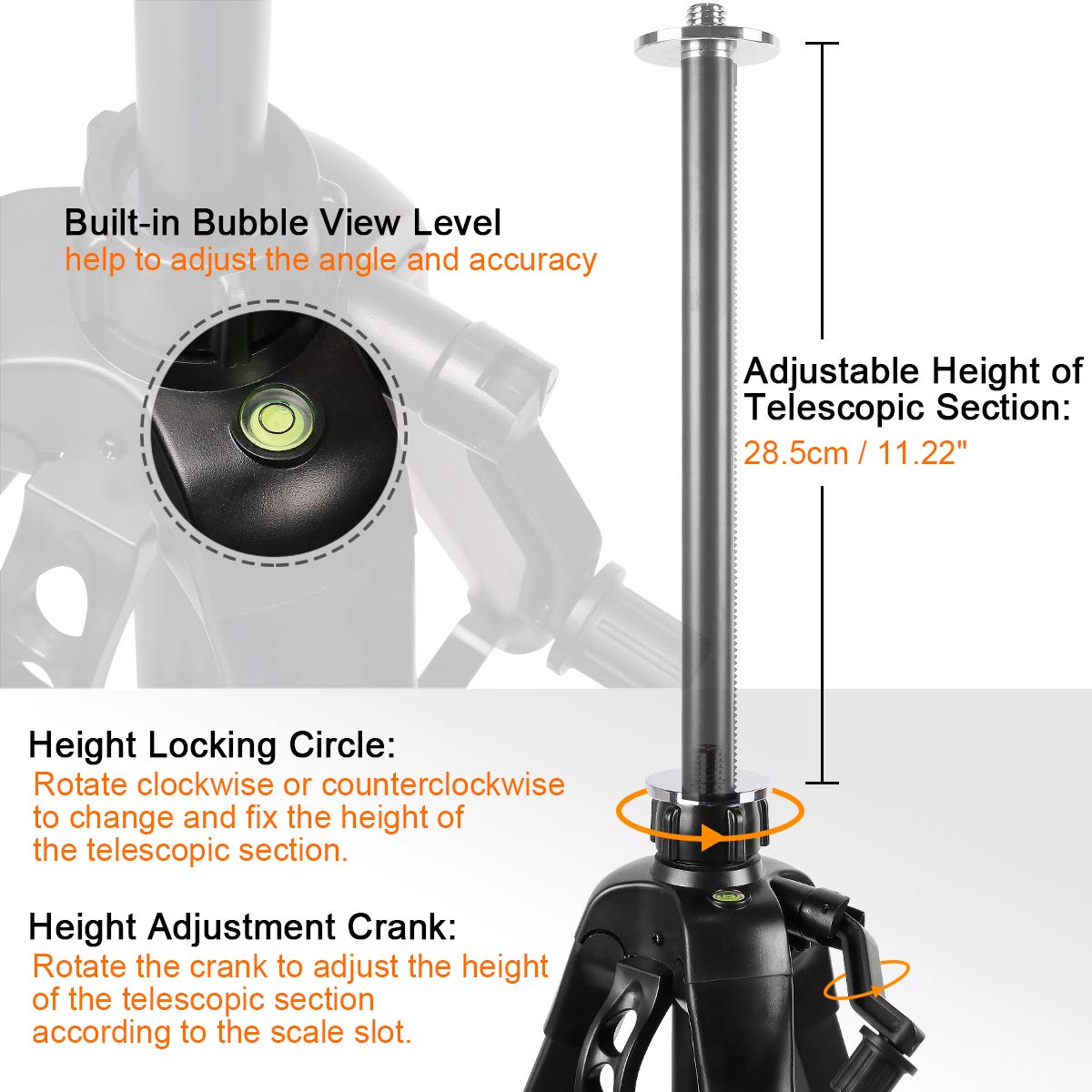 Die Arbeitshöhe ist stufenlos von 56 cm bis 158 cm einstellbar. Für eine schnelle Grobeinstellung nutzen Sie die Klemmen an den Beinen, während die leichtgängige Handkurbel am Teleskopauszug eine millimetergenaue Feinjustierung Ihres Lasers ermöglicht.