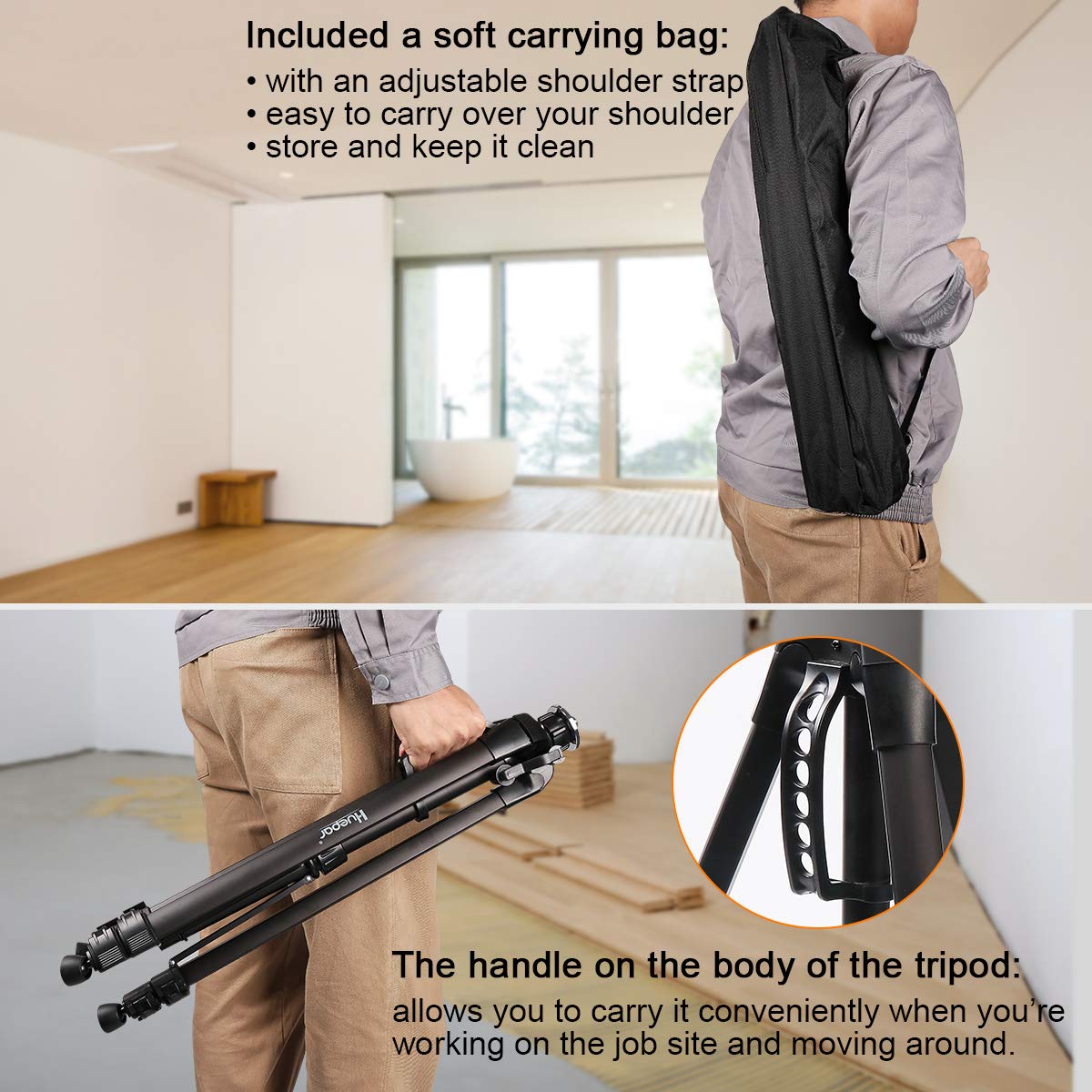 Für den mobilen Einsatz konzipiert: Mit dem integrierten Tragegriff lässt sich das Stativ mühelos auf der Baustelle bewegen. Nach getaner Arbeit verstauen Sie es in der mitgelieferten Tragetasche mit Schultergurt. Mit nur 1,2 kg Gewicht und einem Packmass von 60 cm findet es leicht in jedem Fahrzeug Platz.