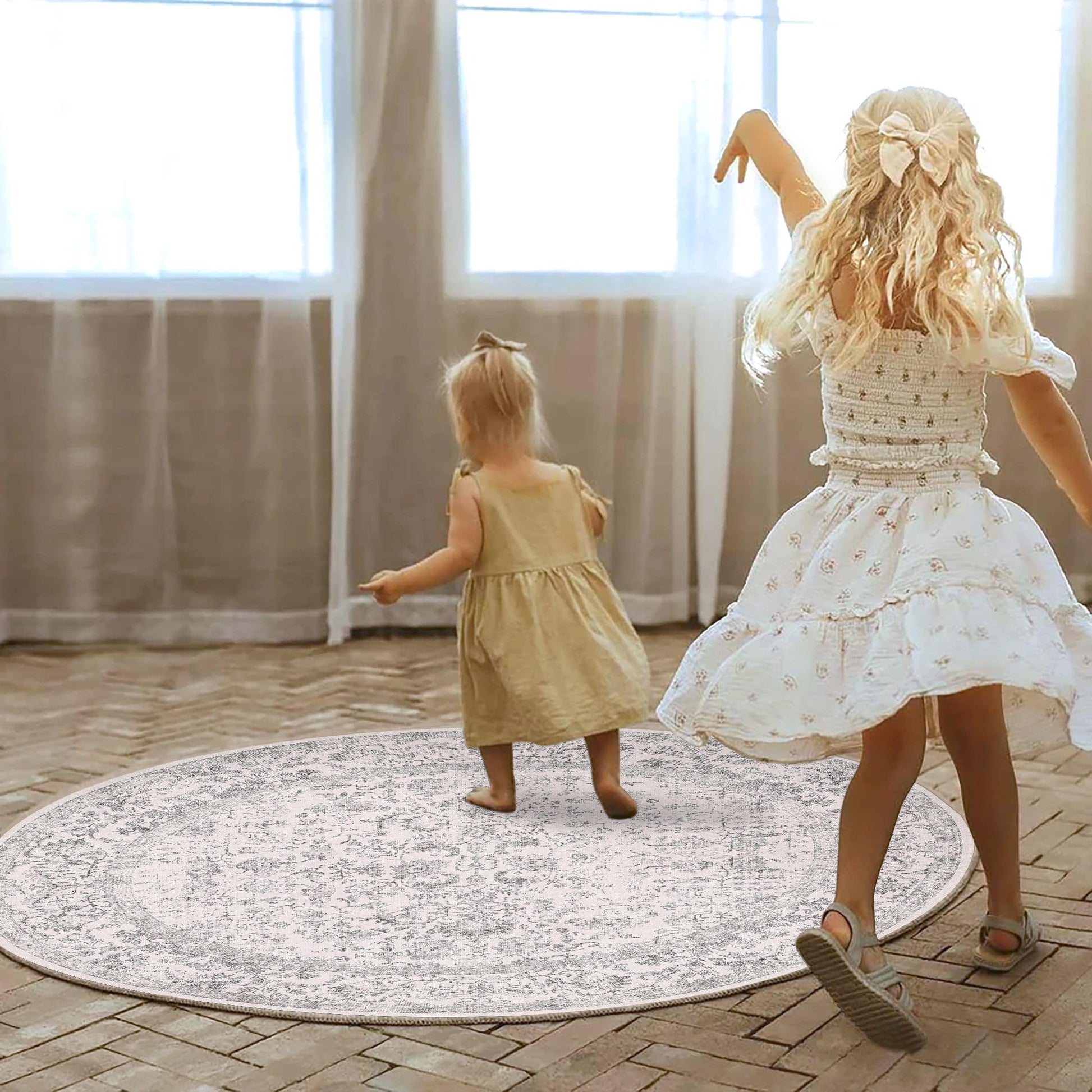 HUGEAR Vintage Runder Teppich - Waschbar Grau 150cm