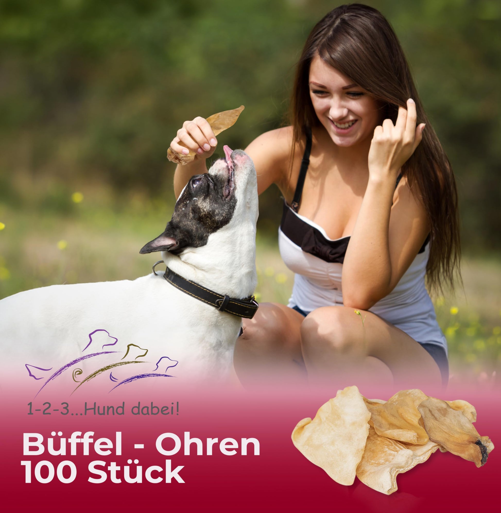 Hund dabei! Büffel-Ohren Natur-Snack - 100 Stück Vorratspaket