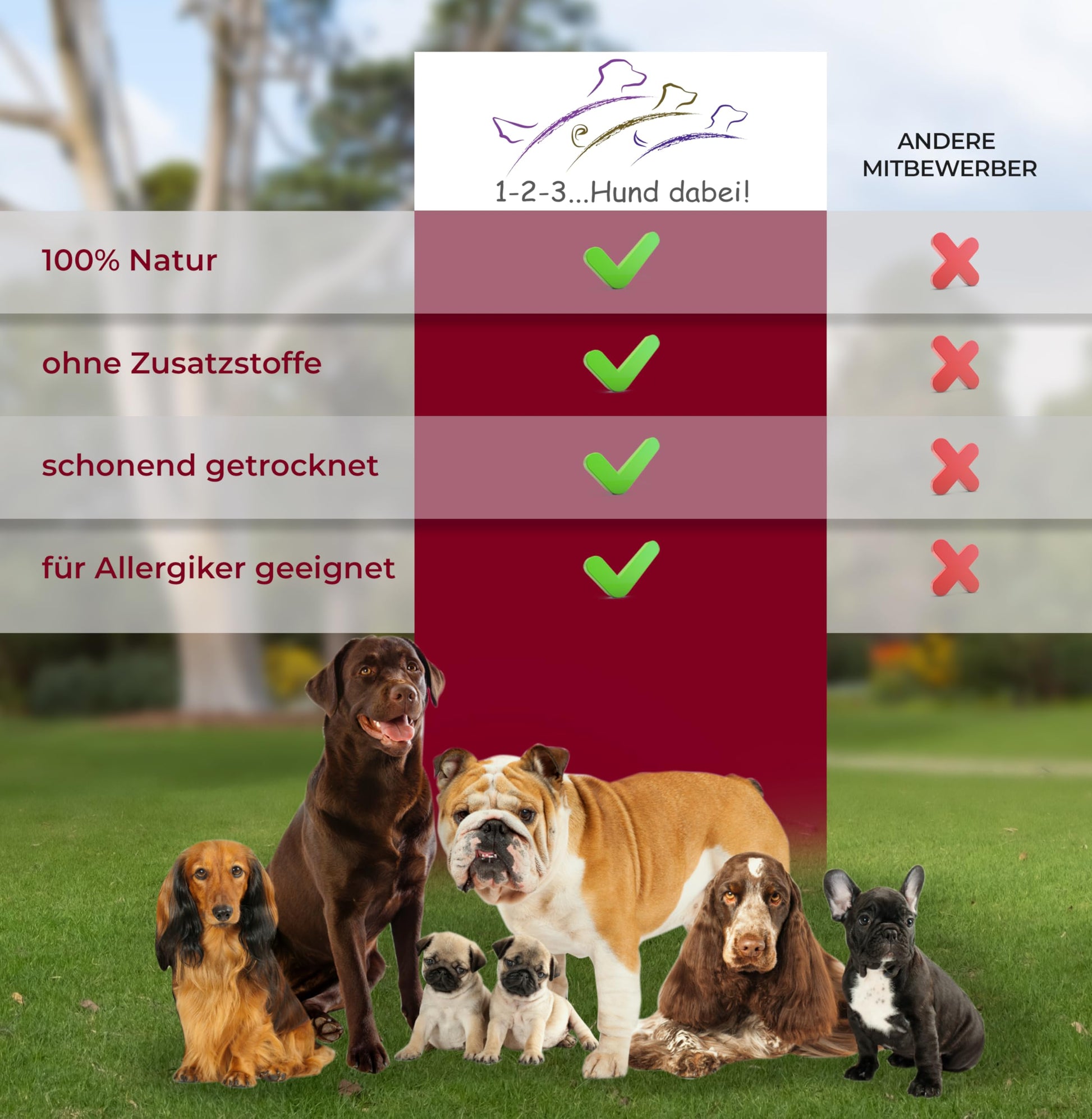 Ein reiner, gesunder und schmackhafter Genuss für jeden Hund.