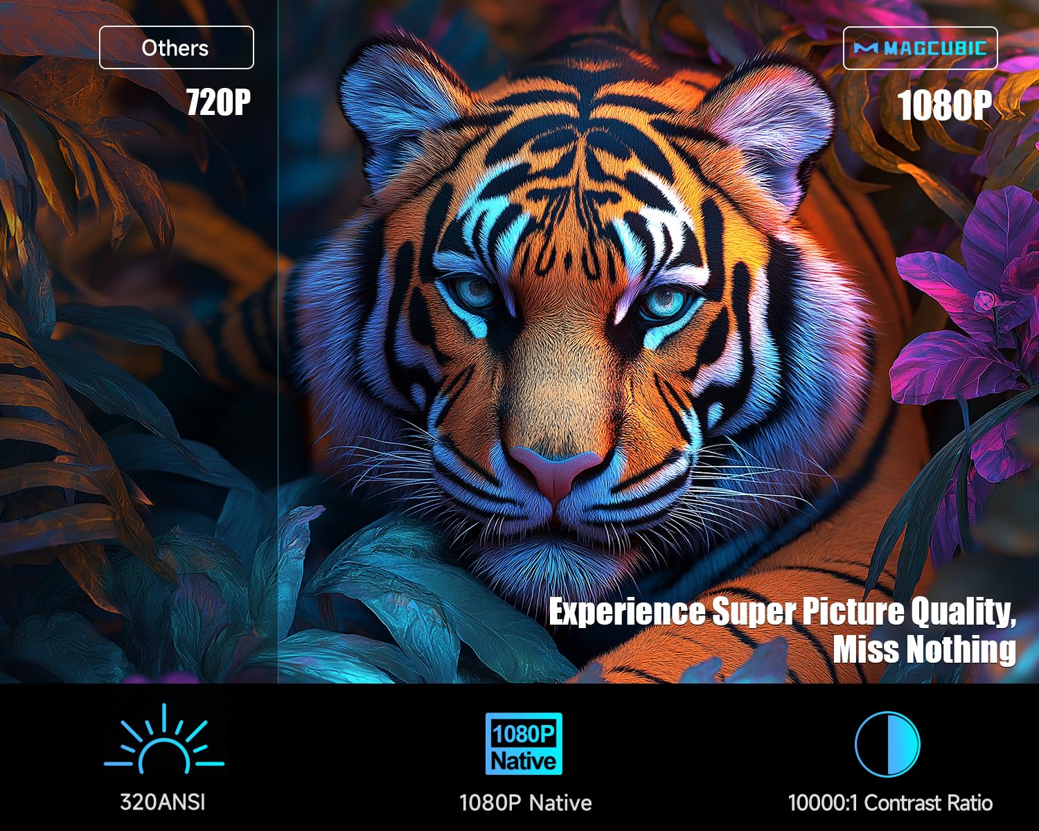 - Native 1080p Full-HD Auflösung: Liefert gestochen scharfe Bilder mit 320 ANSI Lumen, 12000 Lumen Helligkeit und einem hohen Kontrastverhältnis von 10'000:1 für lebendige Farben.
